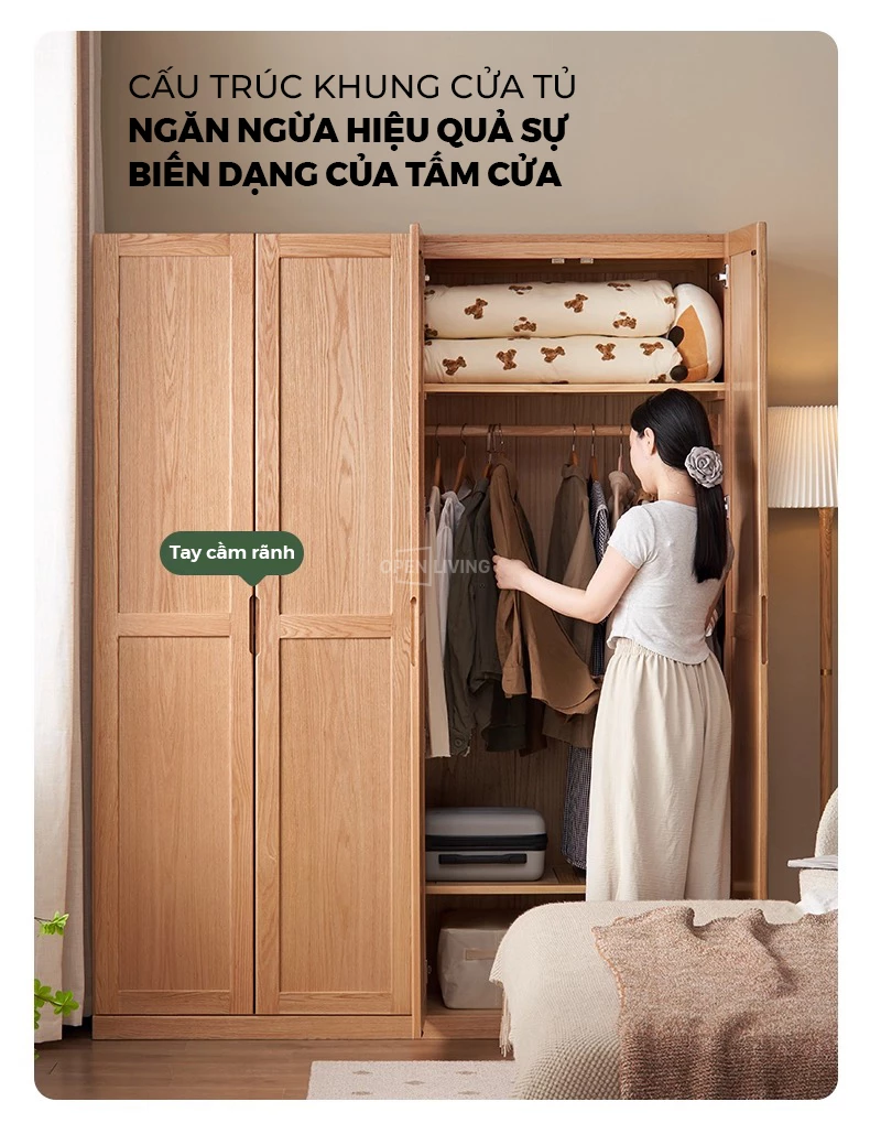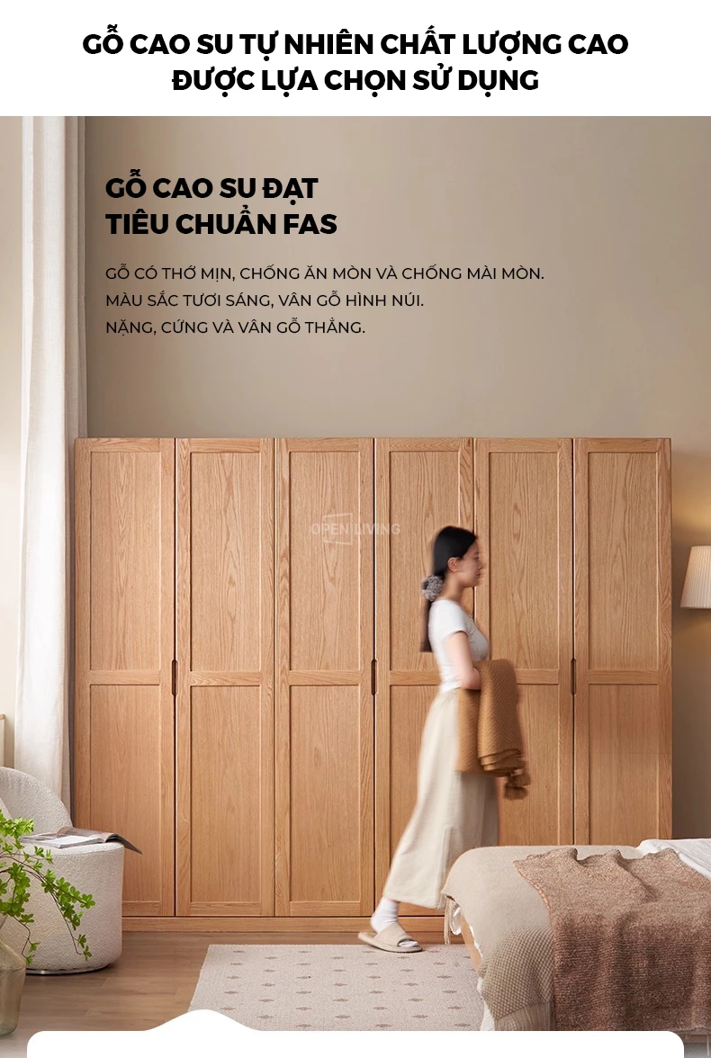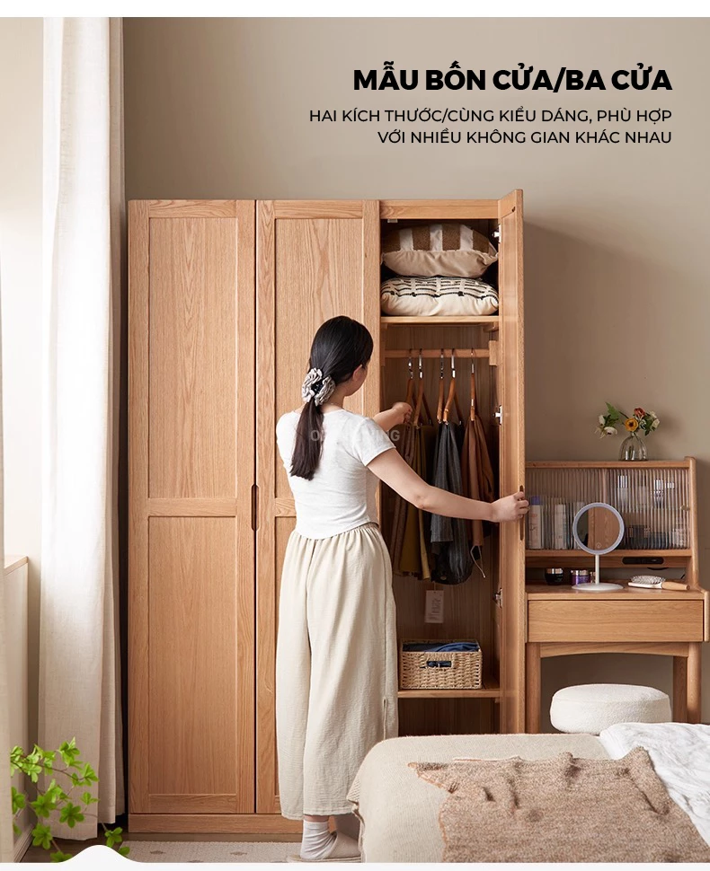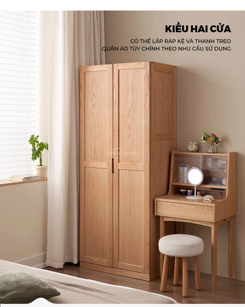Tủ quần áo cánh lùa gỗ tự nhiên OP 002