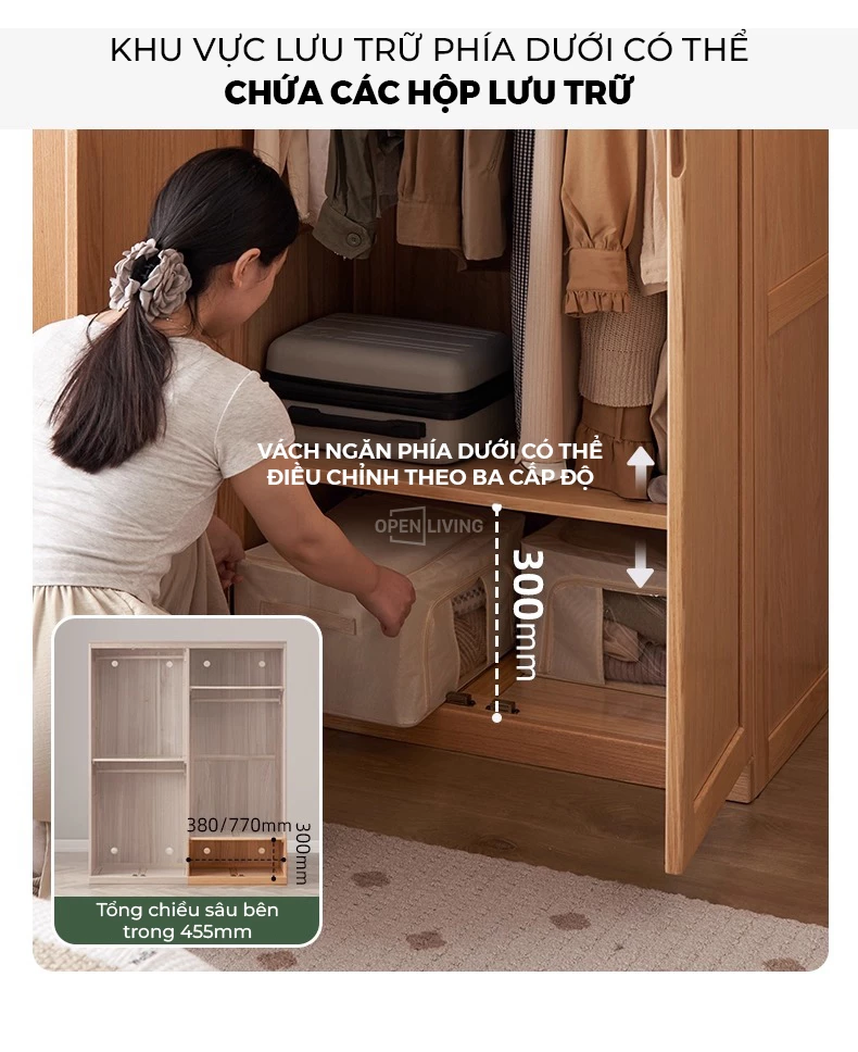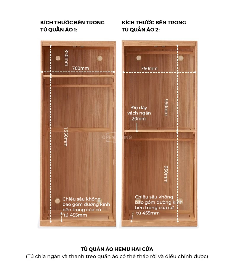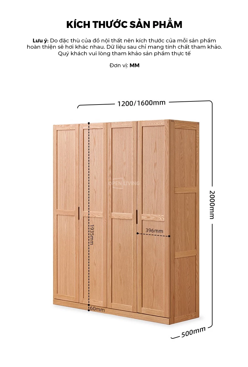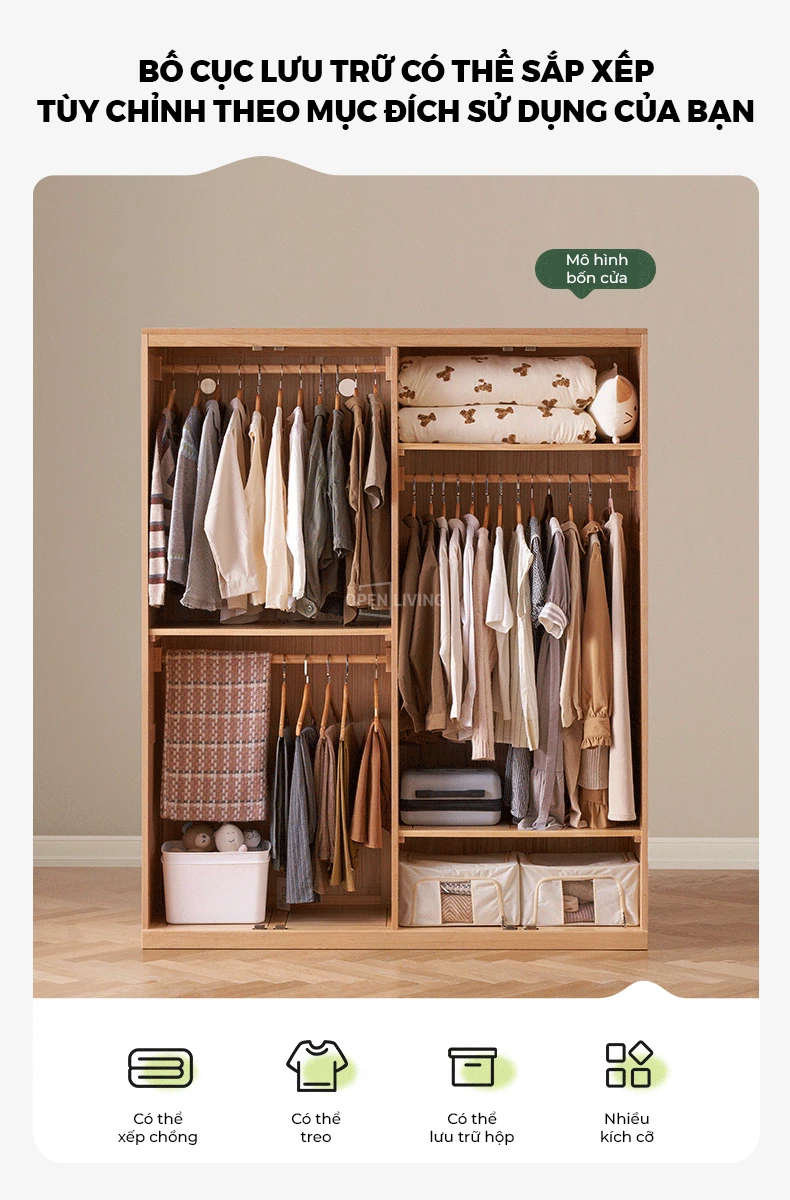 Tủ quần áo cánh lùa gỗ tự nhiên OP 002