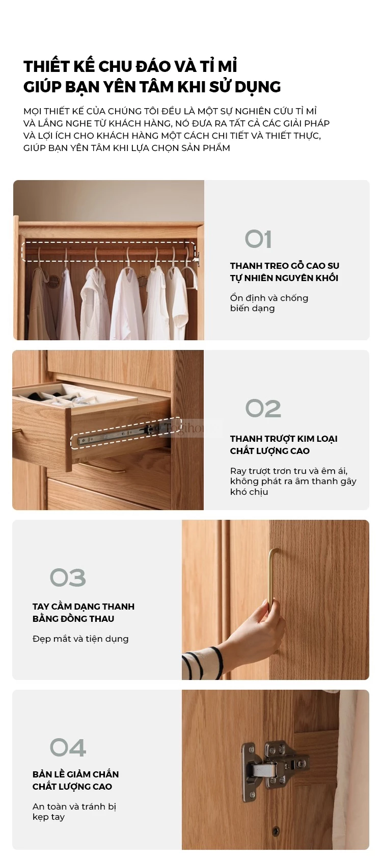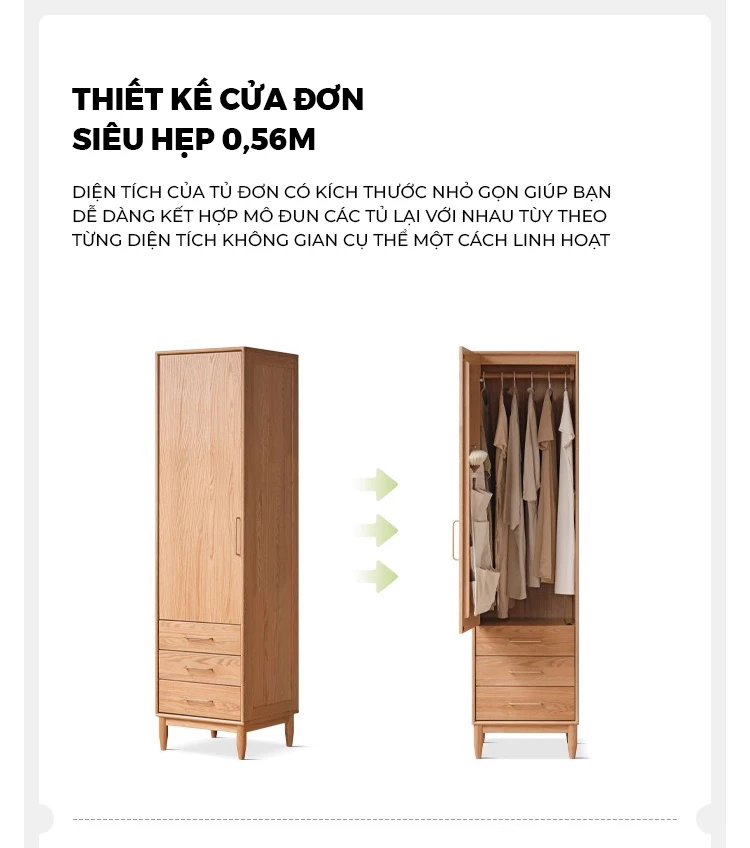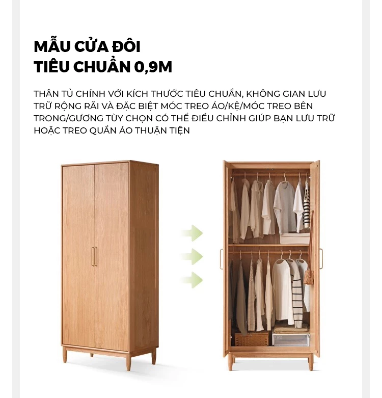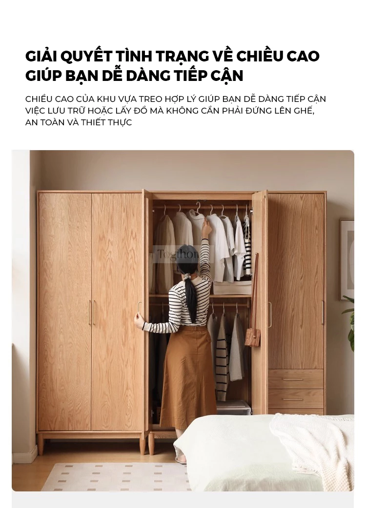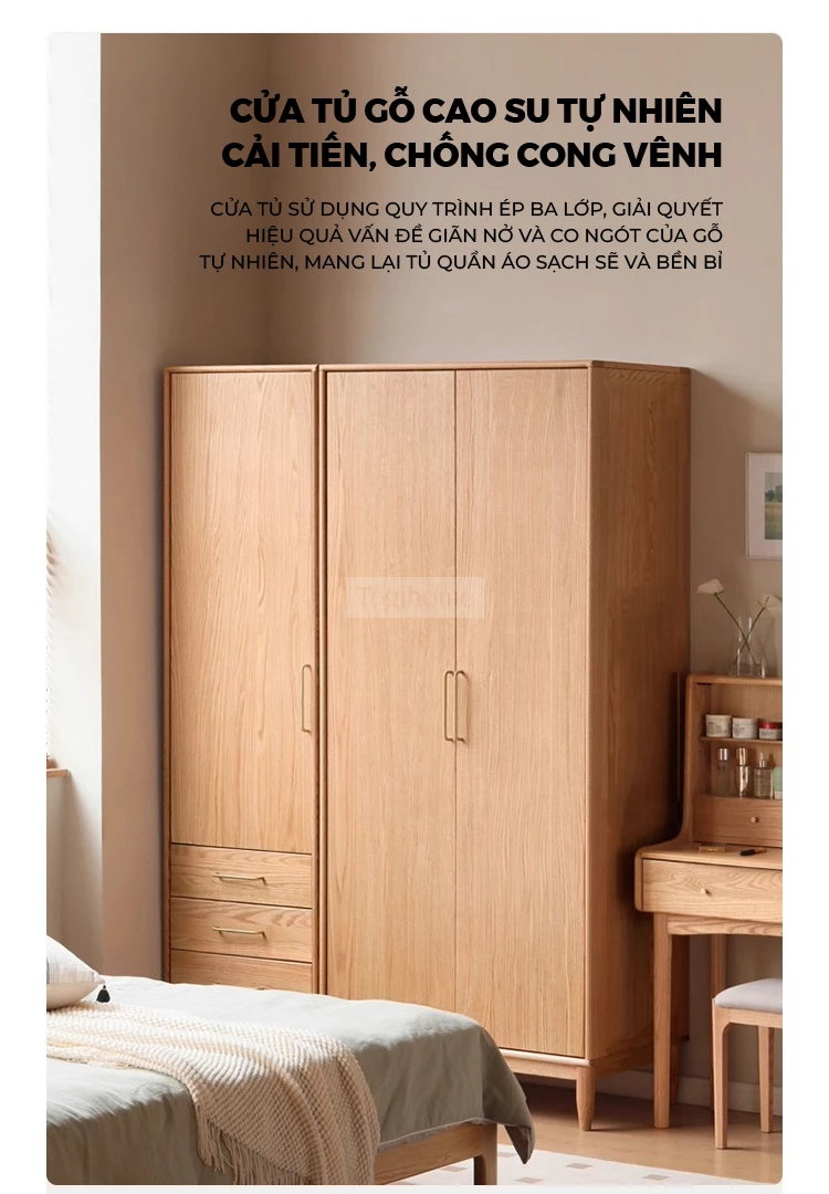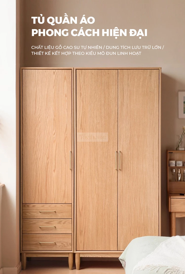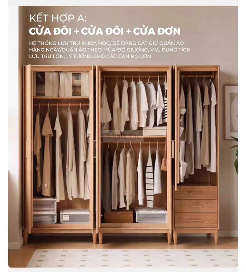 Tủ Quần Áo Gỗ Cao Su Tự Nhiên Togismart – Thiết Kế Module Hiện Đại, Dung Tích Lớn, An Toàn Cho Gia Đình - Mã TQ199