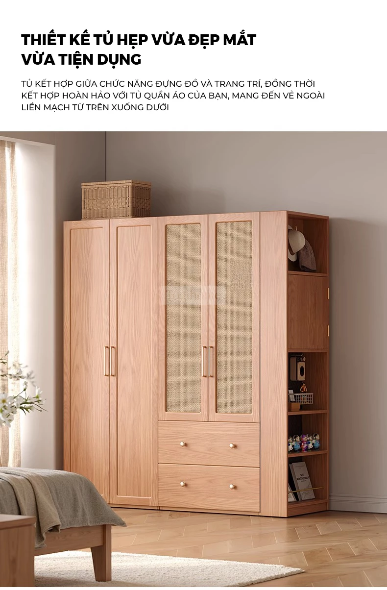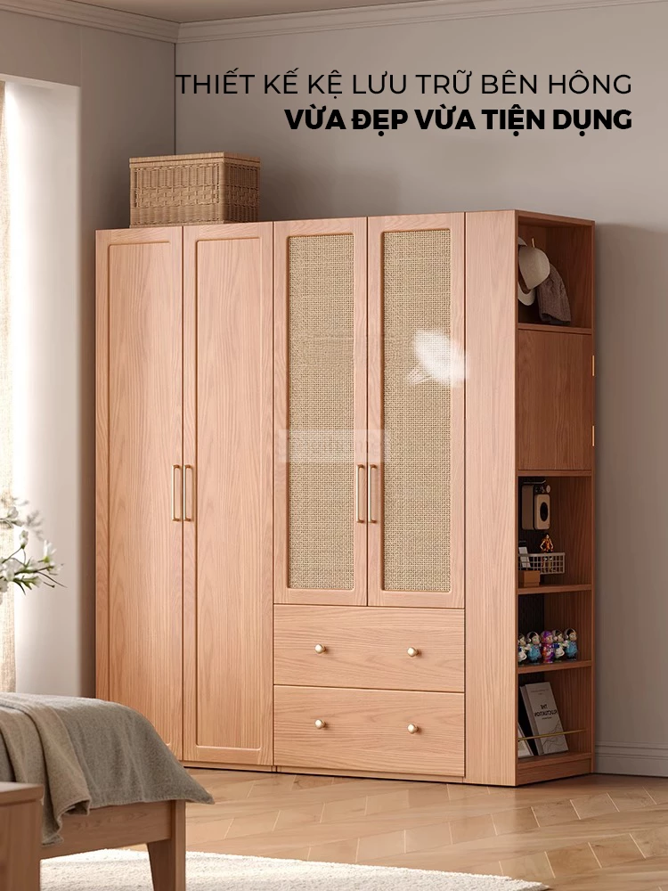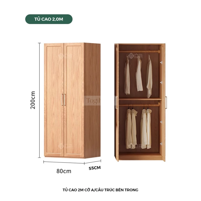 Tủ Quần Áo Gỗ Togismart Cửa Mở Kết Hợp Kệ Lưu Trữ Bên Hông Thiết Kế Tối Giản, Đa Năng - Mã TQ231
