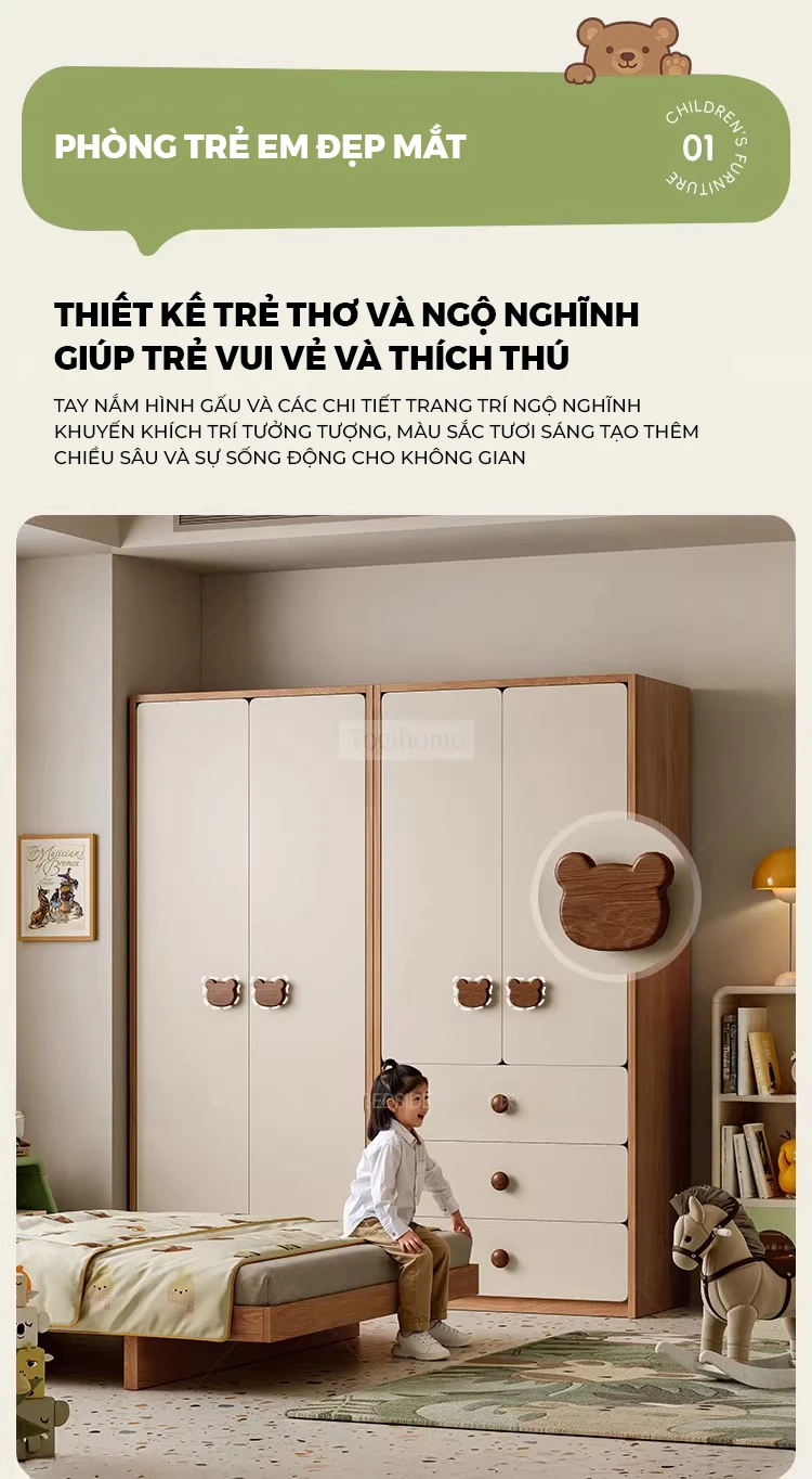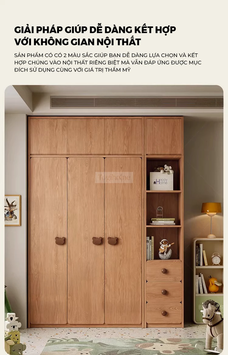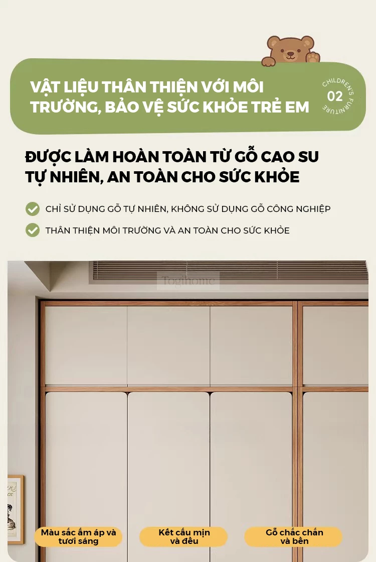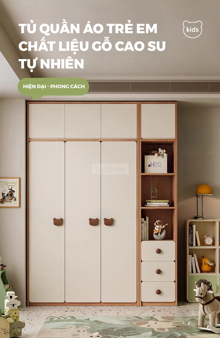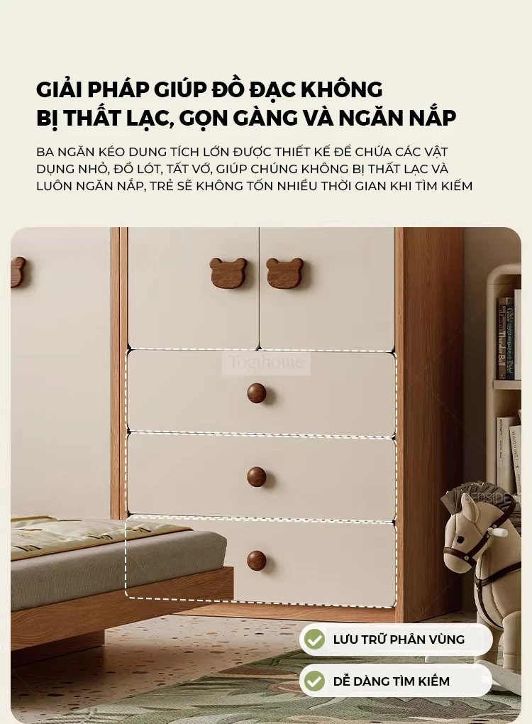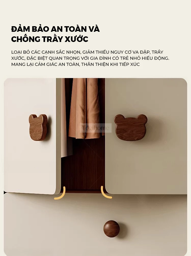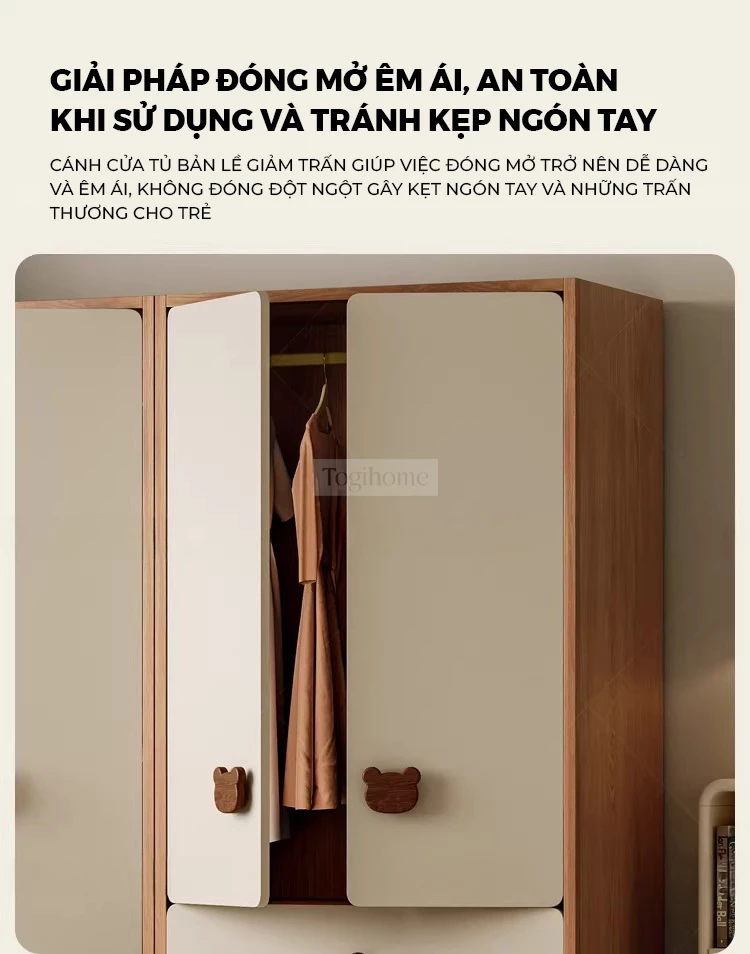 Tủ Quần Áo Gỗ Tự Nhiên Cho Bé Togihome TE320 – Bo Góc Chống Va Đập, Không Formaldehyde