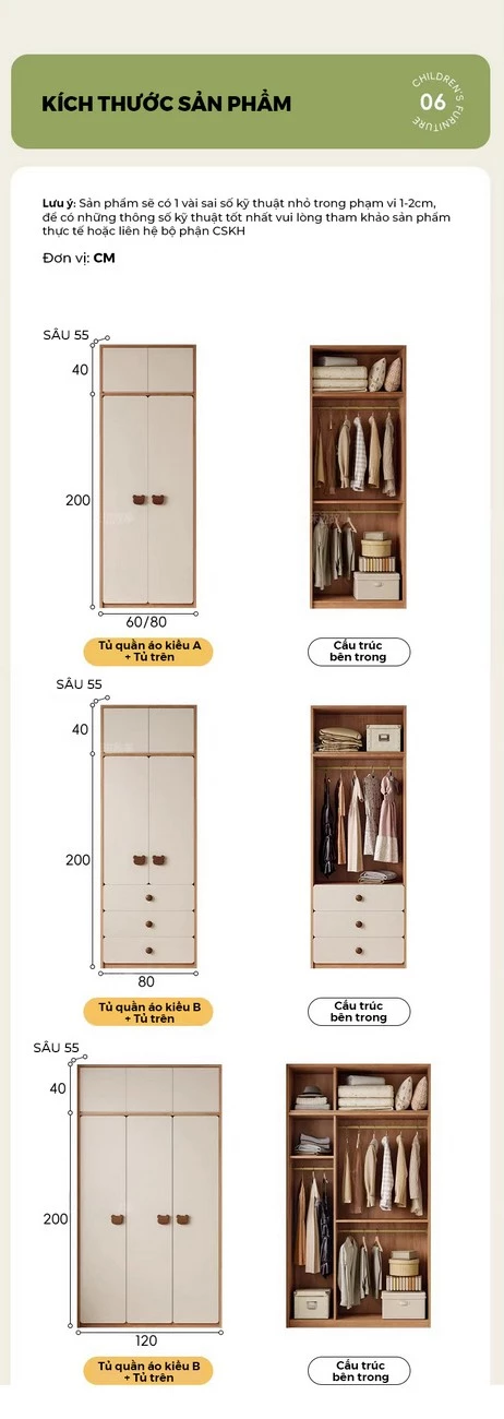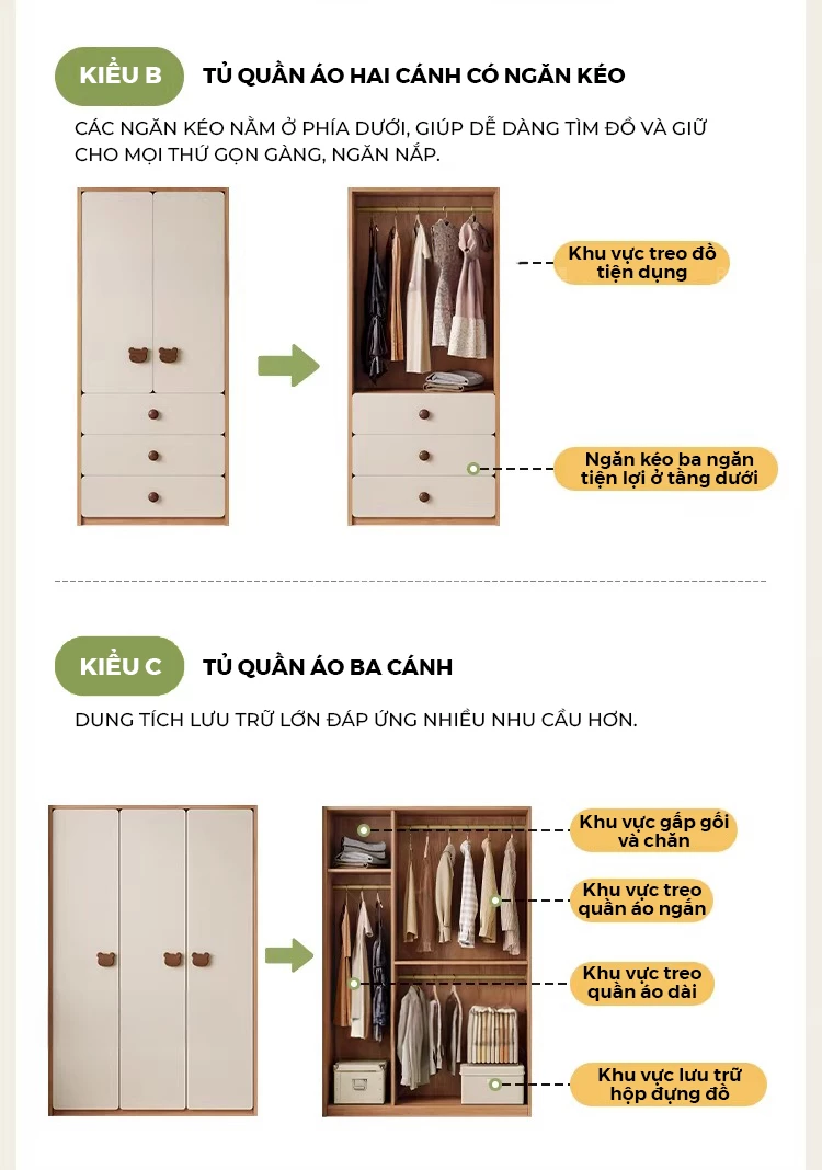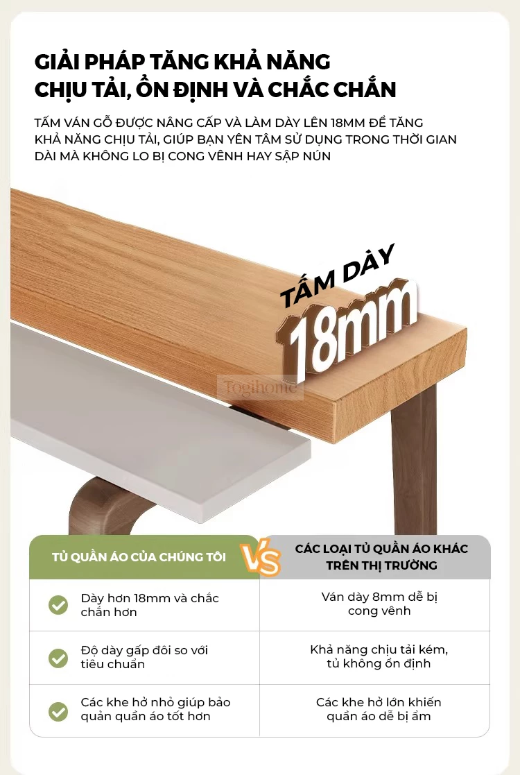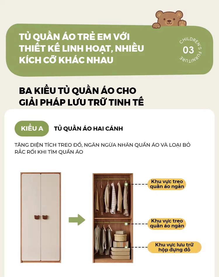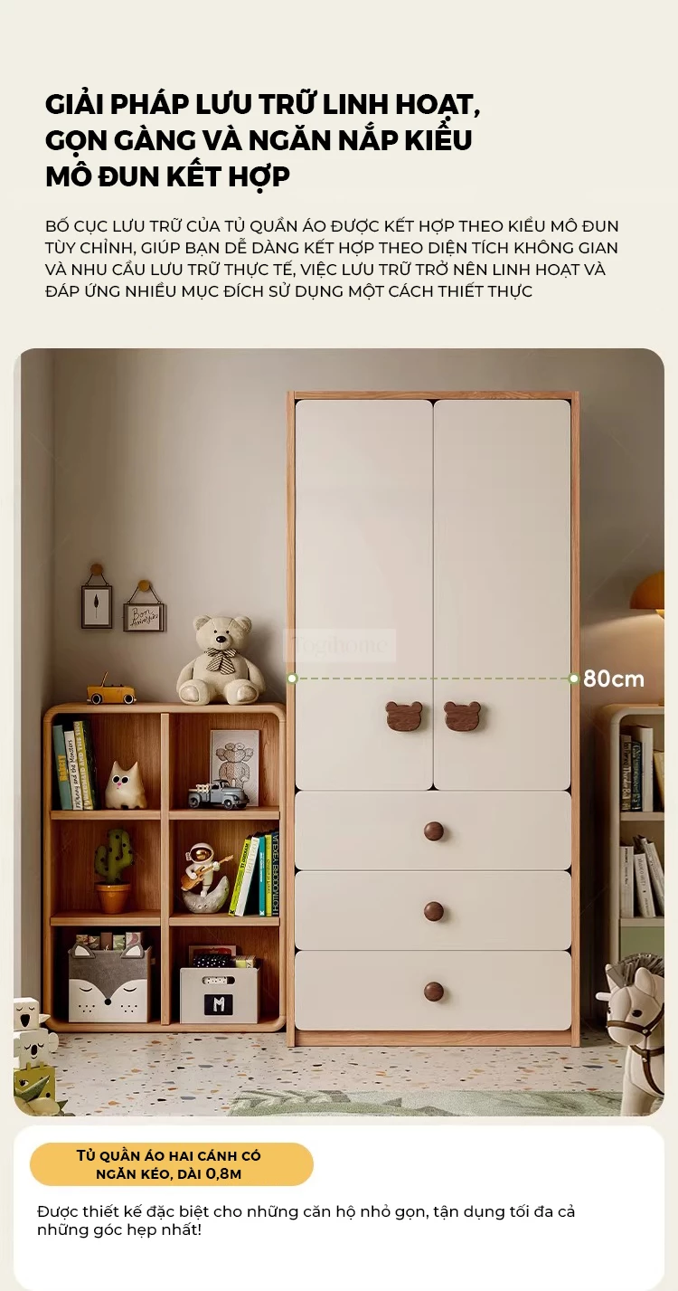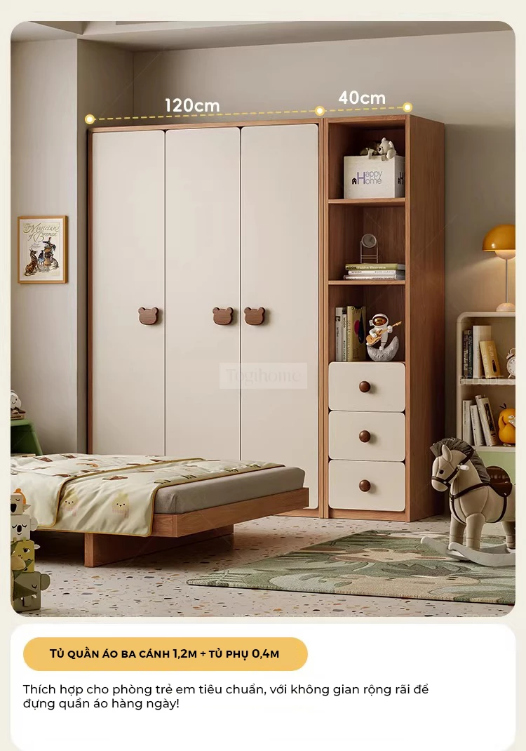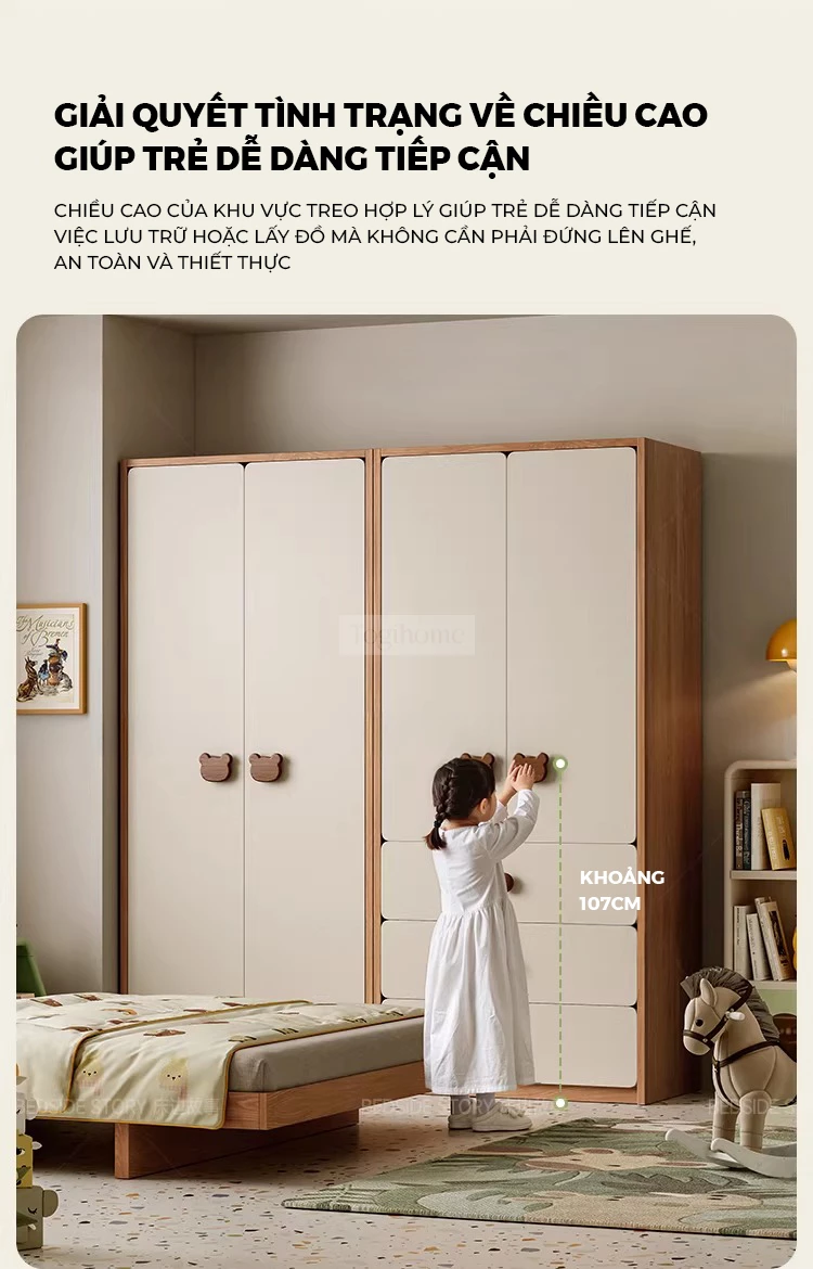 Tủ Quần Áo Gỗ Tự Nhiên Cho Bé Togihome TE320 – Bo Góc Chống Va Đập, Không Formaldehyde