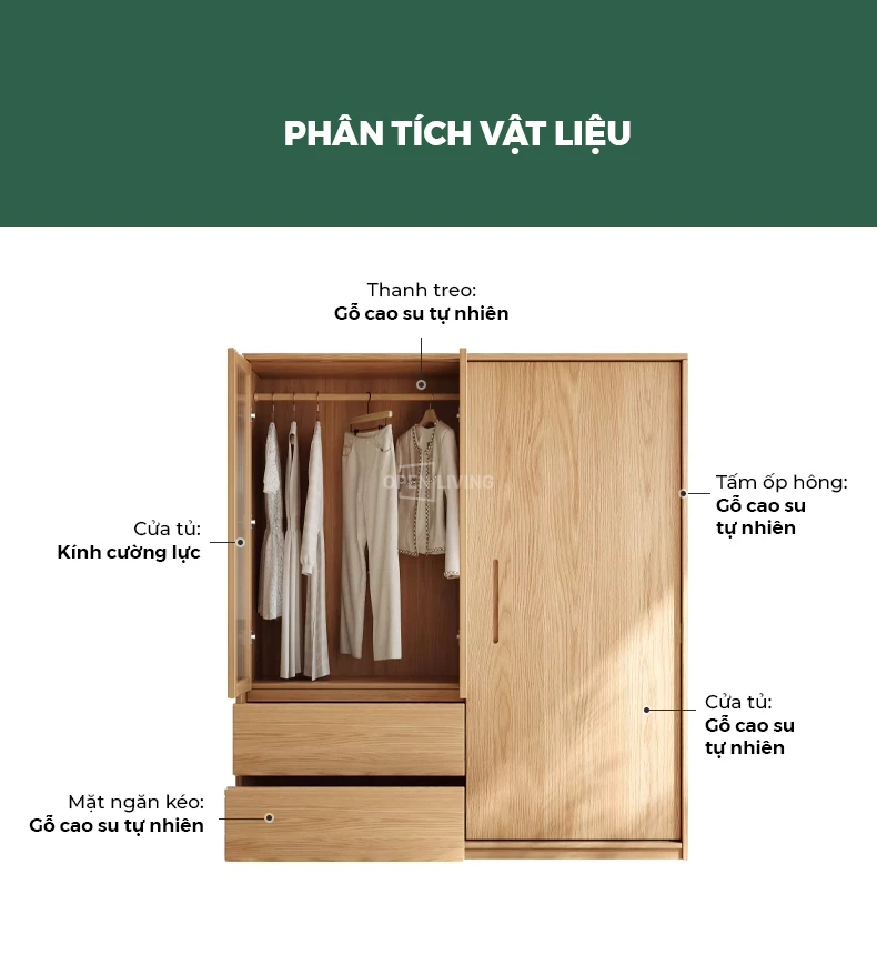 Tủ quần áo gỗ tự nhiên OP 005