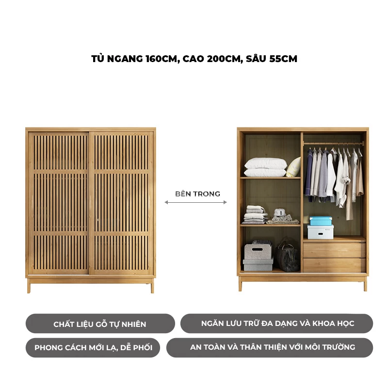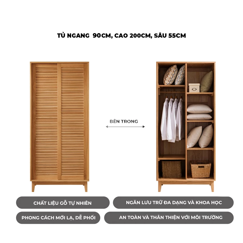 Tủ quần áo gỗ tự nhiên BR156 thiết kế cánh chớp hiện đại, giúp lưu thông không khí, bảo quản quần áo tốt hơn. Chất liệu gỗ cao cấp bền đẹp, kiểu dáng tinh tế, mang đến sự sang trọng và tiện nghi cho không gian sống.