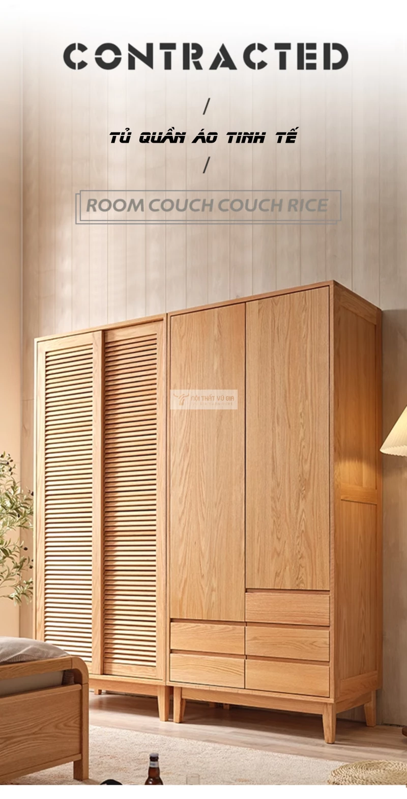 Tủ quần áo gỗ tự nhiên thiết kế cánh chớp hiện đại BR156