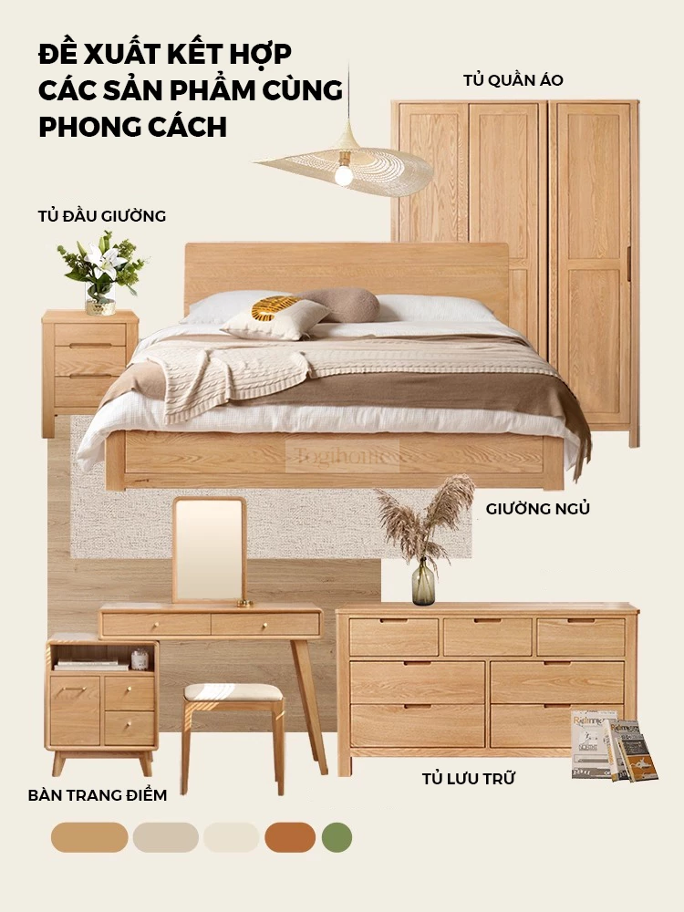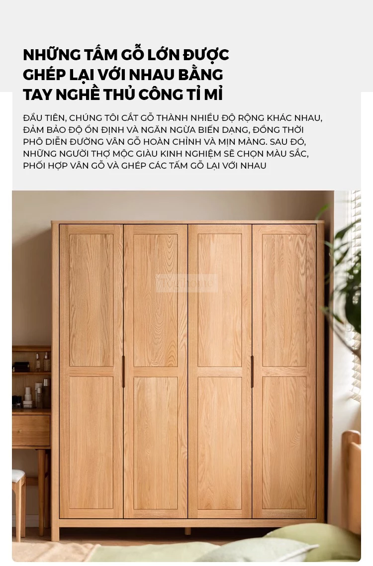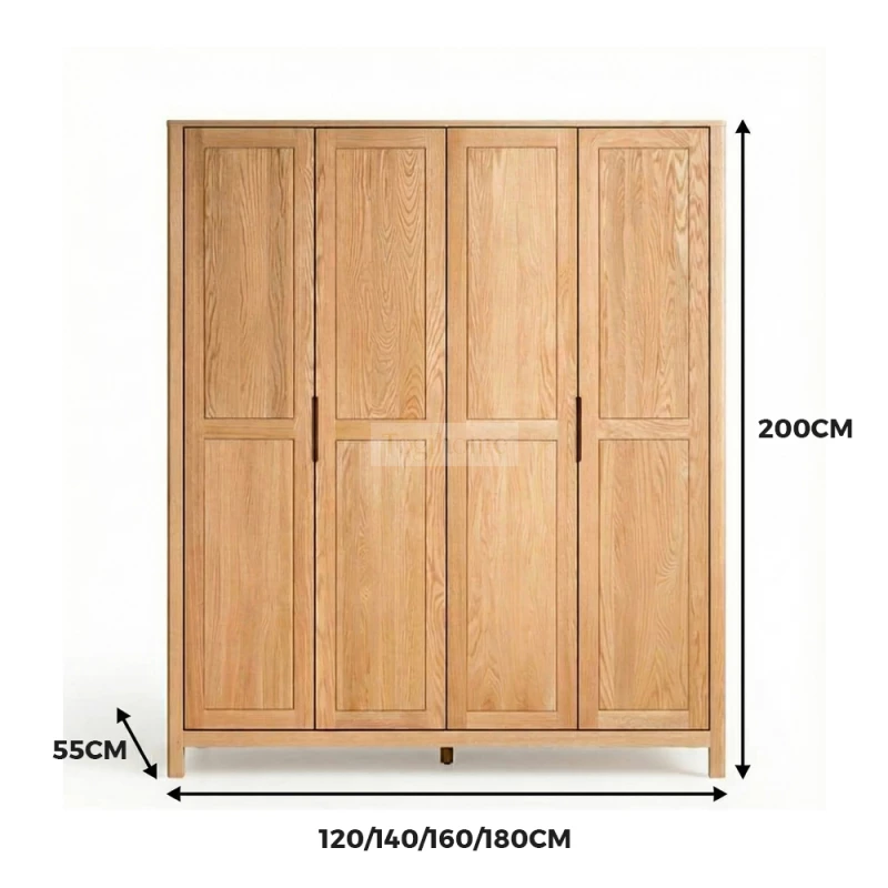 Tủ Quần Áo Gỗ Tự Nhiên Togismart 4 Cánh Bố Cục Treo Khoa Học, Lưu Trữ Lớn Cho Phòng Ngủ - Mã TQ233