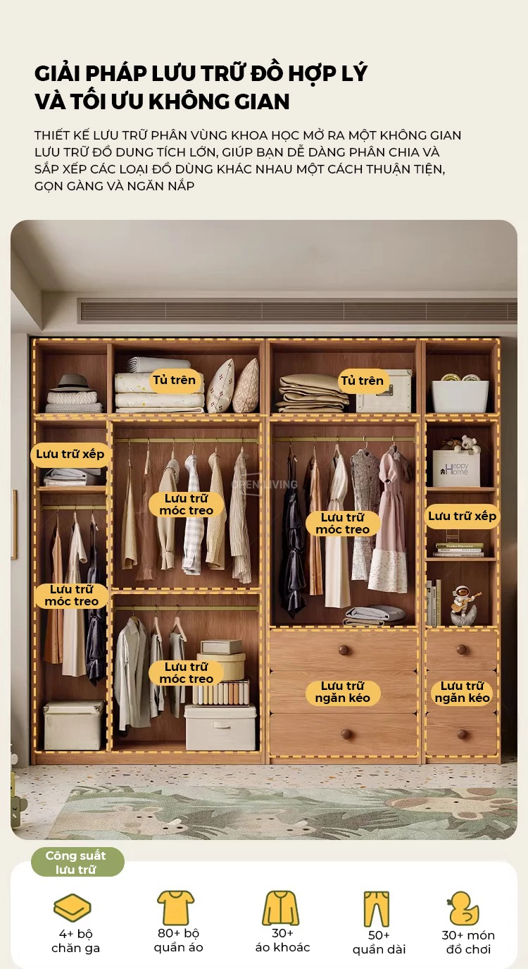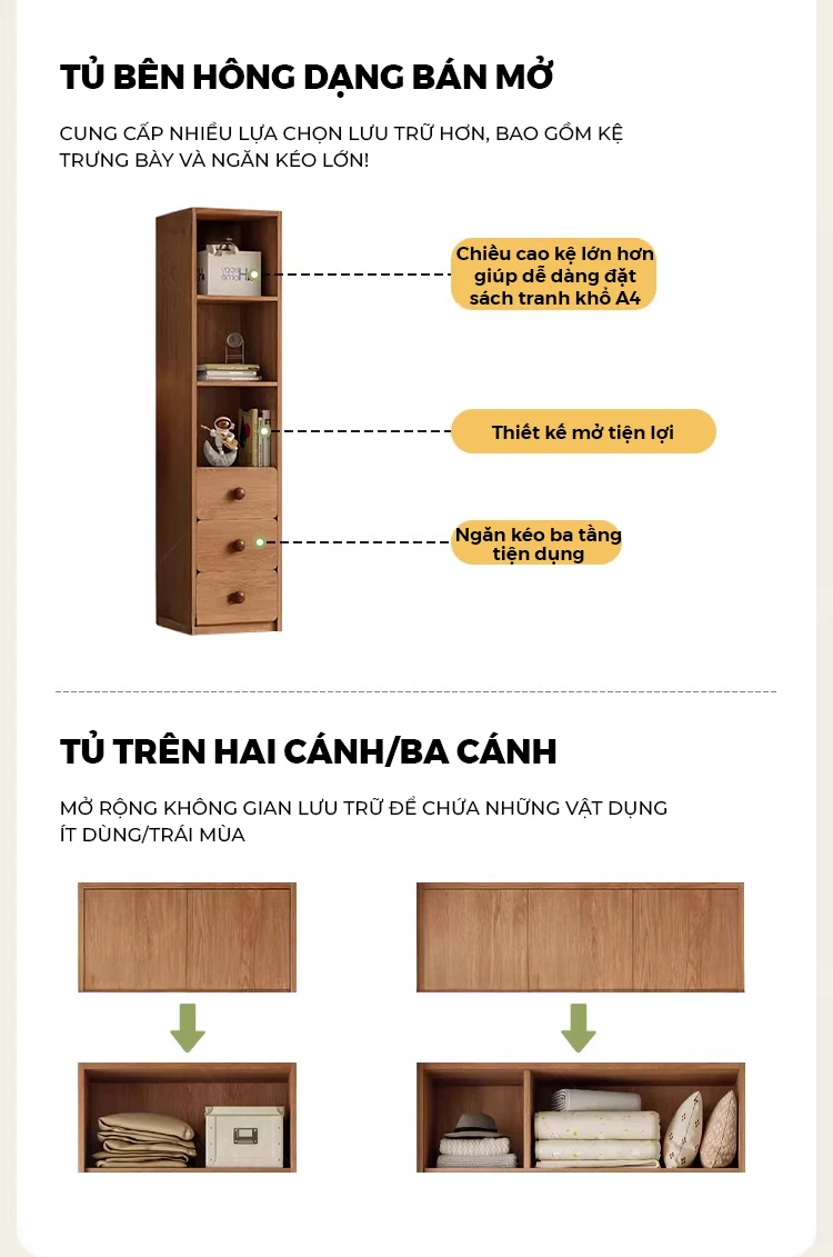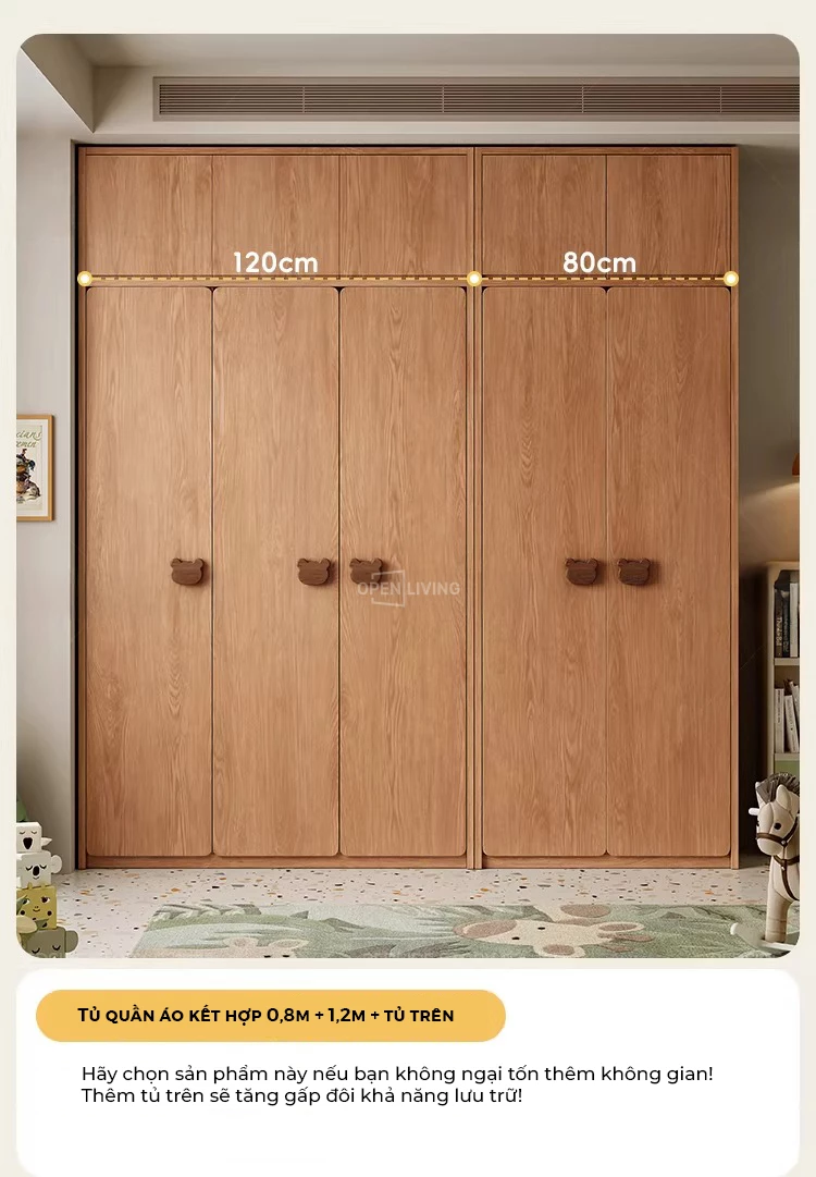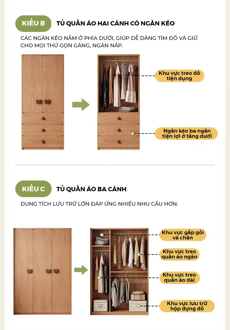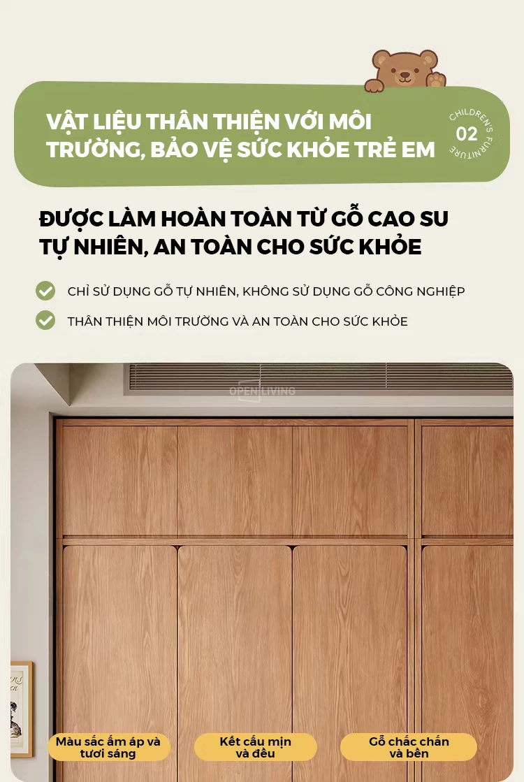 Tủ Quần Áo Trẻ Em 4 Cánh Gỗ Cao Su Tự Nhiên OTA 027 – Tủ Áo Bé Trai Bé Gái 3 Ngăn Kéo, Thiết Kế An Toàn Bo Tròn