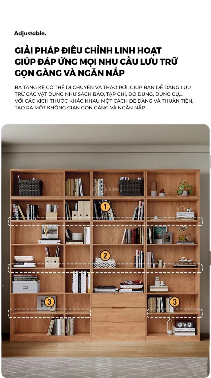 Tủ Sách Kính Kết Hợp Ngăn Kéo Gỗ Tự Nhiên Openliving TS480 là giải pháp nội thất đa năng, giúp tối ưu hóa không gian làm việc và lưu trữ tài liệu một cách chuyên nghiệp. Được chế tác từ gỗ tự nhiên cao cấp, sản phẩm không chỉ mang lại độ bền chắc vượt trội mà còn tôn vinh vẻ đẹp sang trọng, ấm cúng cho căn phòng. Thiết kế của TS480 là sự kết hợp thông minh giữa các ngăn kệ cánh kính phía trên giúp trưng bày sách, hồ sơ dễ dàng quan sát, và hệ thống ngăn kéo kín đáo phía dưới để cất giữ những tài liệu quan trọng hoặc vật dụng cá nhân. Với sự phân khu khoa học, mẫu tủ này đảm bảo mọi thứ luôn được sắp xếp gọn gàng, ngăn nắp, đồng thời bảo vệ hồ sơ khỏi bụi bẩn, mang đến một không gian sống và làm việc đầy cảm hứng.