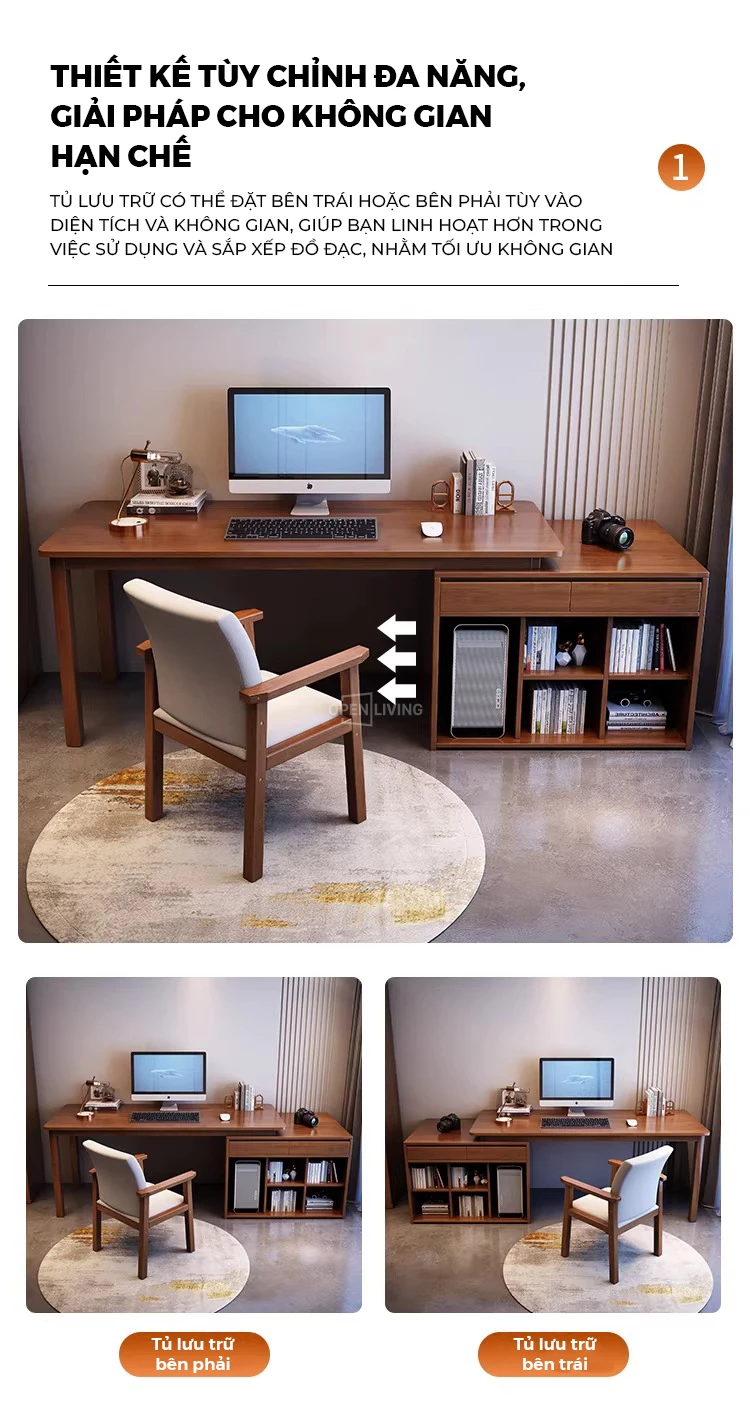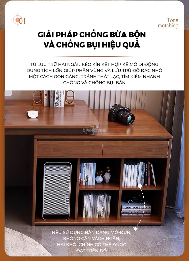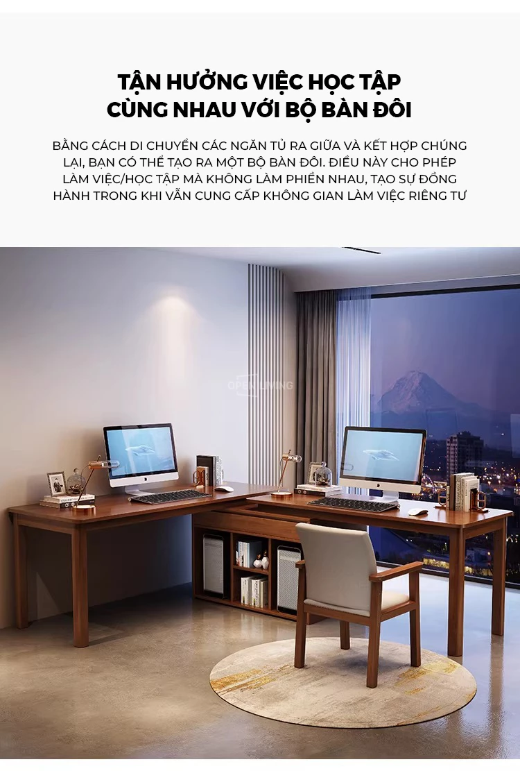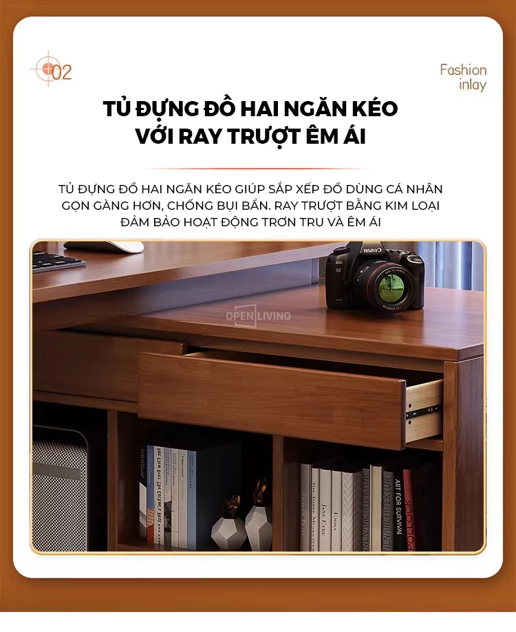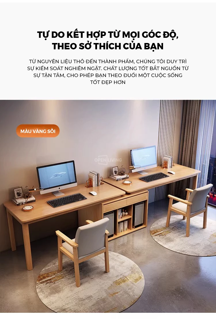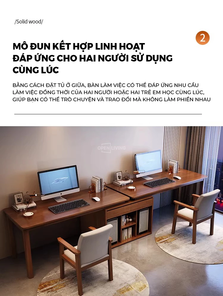 Bàn Làm Việc Gỗ Tự Nhiên 2 Chỗ Ngồi Openliving Cho Phòng Ngủ Home Office - Có Kệ Đựng Hồ Sơ - BTN692
