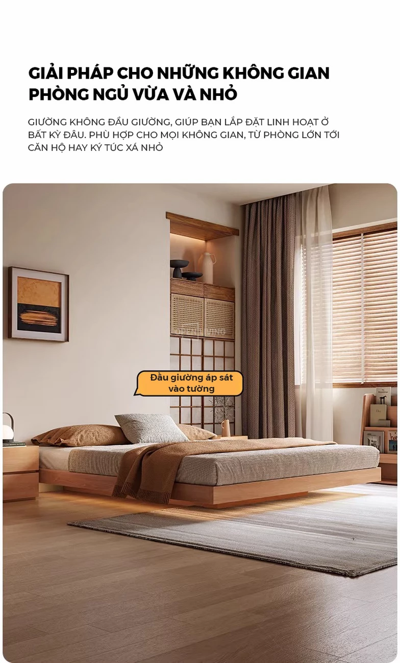 Giường Gỗ Cao Su Tự Nhiên Togihome GNH290 – Thiết Kế Liền Khối Thanh Lịch