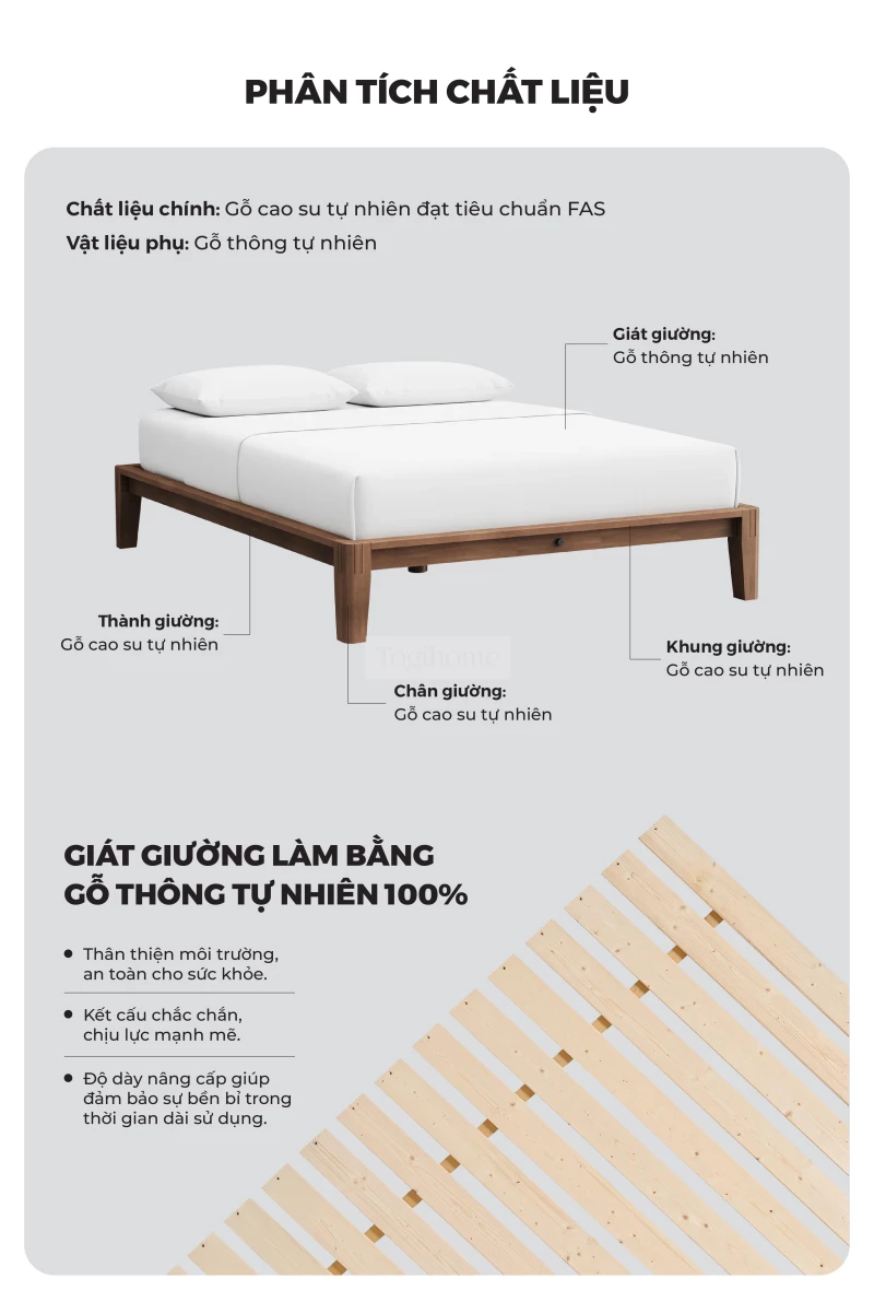 Giường Gỗ Không Tựa Lưng Togismart Chân To Bản Bo Góc Mềm Mại An Toàn Cho Trẻ Nhỏ Va Chạm - Mã GN106