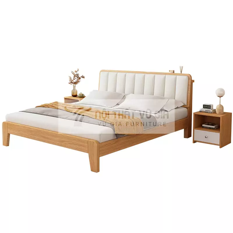 Giường gỗ tự nhiên phong cách tối giản kết hợp nệm đầu giường BR50