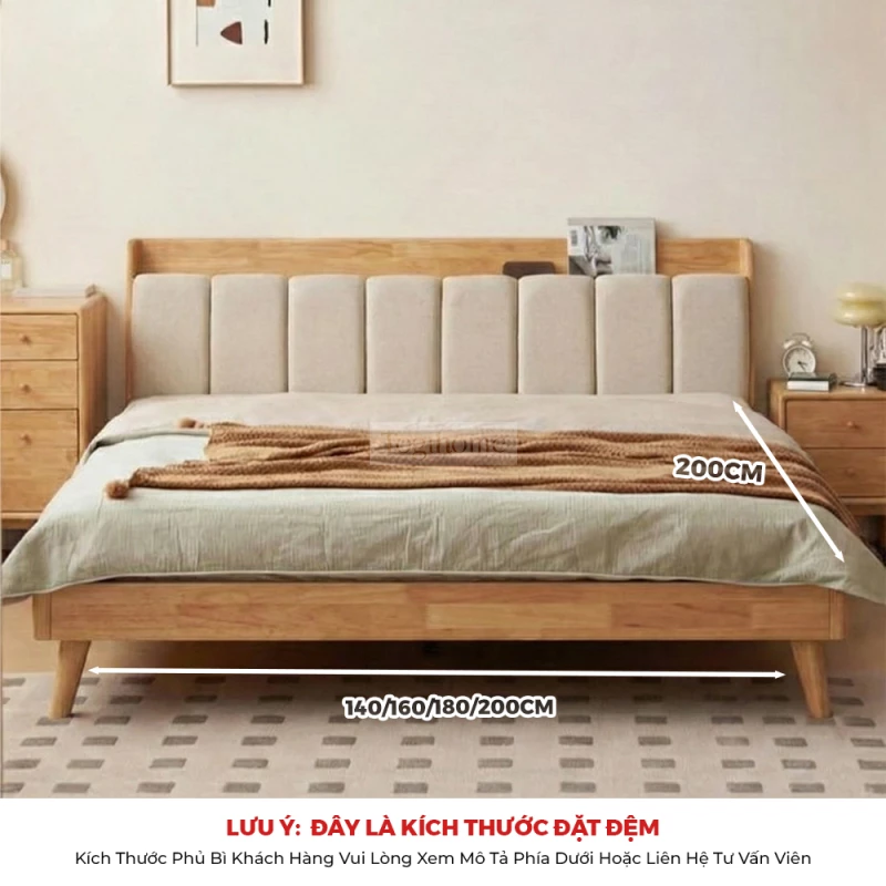 Giường Ngủ Gỗ Cao Su Fino – Mã GM120 sở hữu thiết kế sát tường tối ưu không gian, giúp đồ đạc không rơi vào khe hở và tạo bố cục phòng ngủ gọn gàng hơn. Đầu giường bọc nệm dạng “bàn phím” êm ái, nâng đỡ lưng khi đọc sách hoặc xem phim. Khung giường làm từ gỗ cao su tự nhiên bền chắc, an toàn cho sức khỏe và thân thiện với môi trường. Gầm giường cao 18cm dễ dàng vệ sinh và tăng tính thoáng khí. Kệ đa năng phía đầu giường cho phép lưu trữ trực quan, tiện lợi cho nhịp sống hiện đại. Đặc biệt, sản phẩm có thể tích hợp ổ cắm điện và cổng sạc USB ngay trên đầu giường, mang lại sự tiện lợi tối đa trong sinh hoạt. Lưu ý: tính năng ổ cắm sẽ phát sinh chi phí đi kèm từ 200.000đ - 250.000đ.
