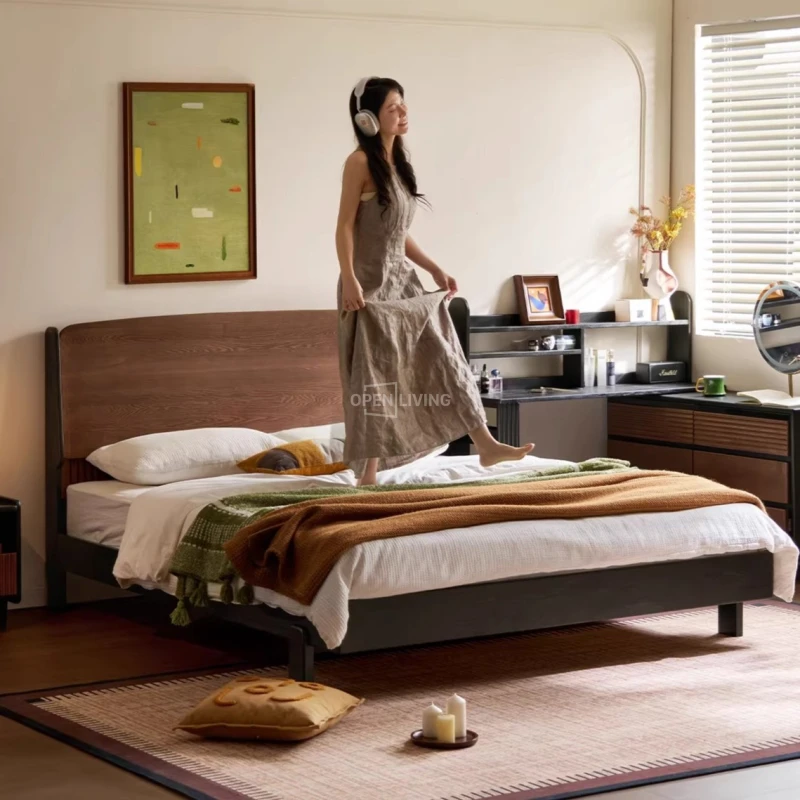 Giường Ngủ Gỗ Cao Su Phủ Veneer Thiết Kế Thanh Lịch Chuẩn Nội Thất Nhật Openliving GN762