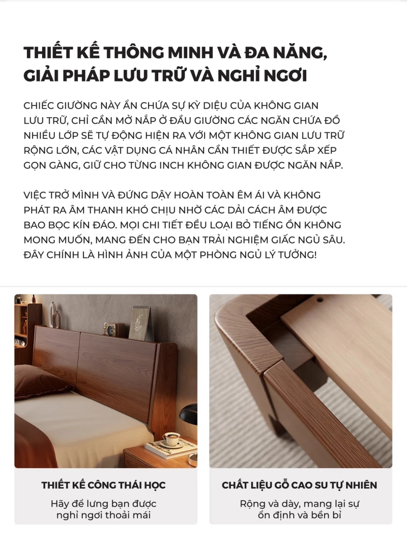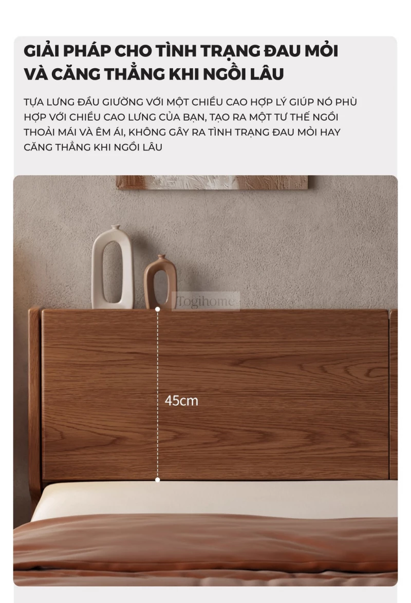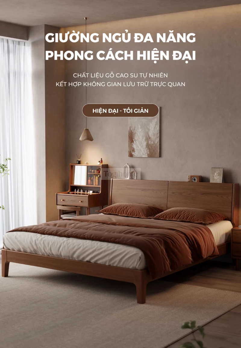 Giường Ngủ Gỗ Tự Nhiên Kiểu Hàn CV510 nổi bật với thiết kế tối giản, mang đậm phong cách nội thất Hàn Quốc hiện đại, tạo cảm giác không gian phòng ngủ rộng rãi và thoáng đãng hơn. Chiếc giường được chế tác từ gỗ tự nhiên nguyên khối, đảm bảo độ chắc chắn tuyệt đối và độ bền vượt thời gian. Điểm nhấn là phần đầu giường thấp, tinh tế, kết hợp các đường nét vuông vắn nhưng mềm mại, đem lại sự ấm cúng, thư thái và tiện nghi, giúp bạn dễ dàng kê sát tường hoặc cửa sổ. CV510 là lựa chọn hoàn hảo cho những ai yêu thích sự yên bình và vẻ đẹp mộc mạc, bền vững.