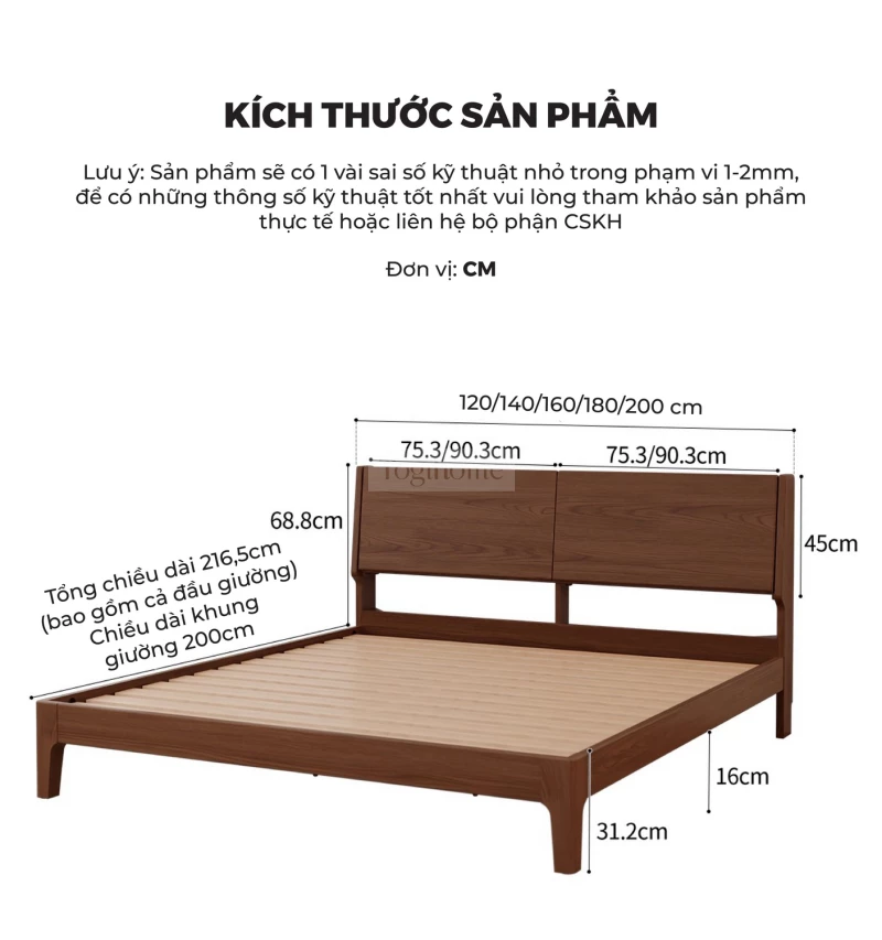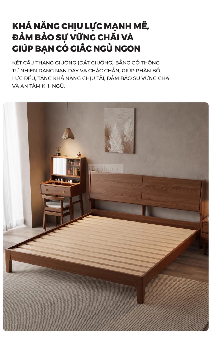 Giường Ngủ Gỗ Tự Nhiên Kiểu Hàn CV510