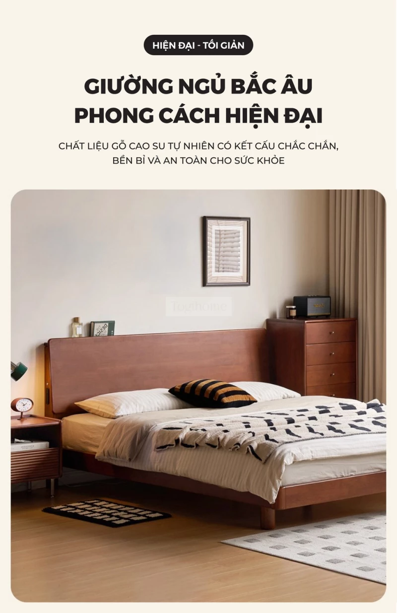 Giường Ngủ Gỗ Tự Nhiên Kiểu Hàn CV710