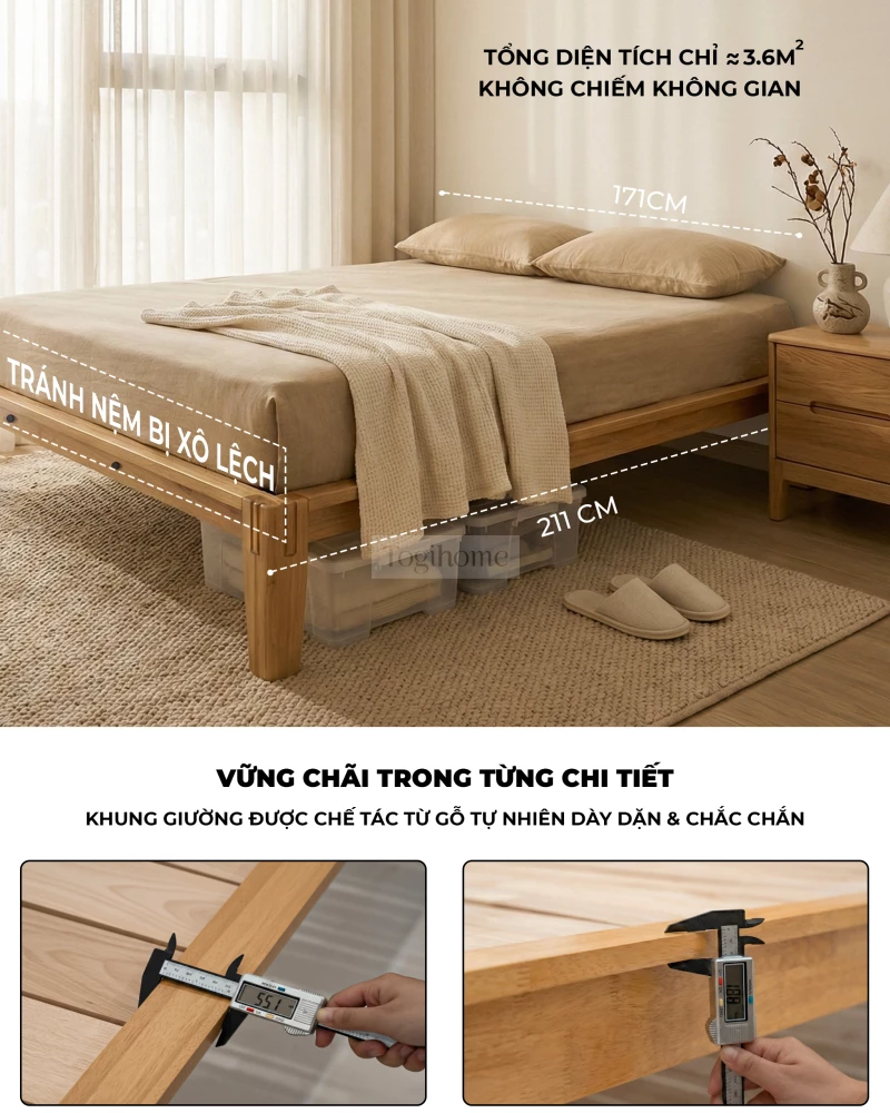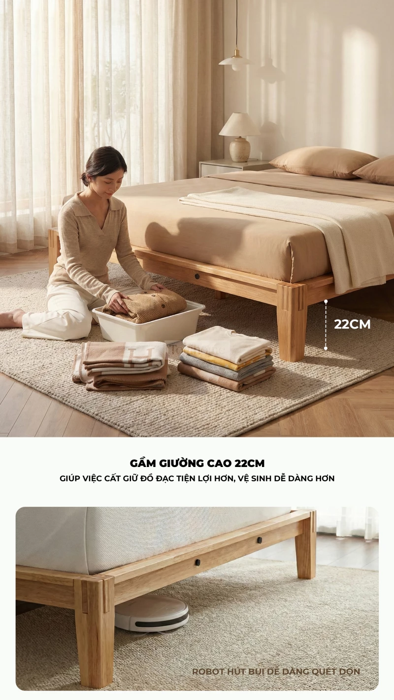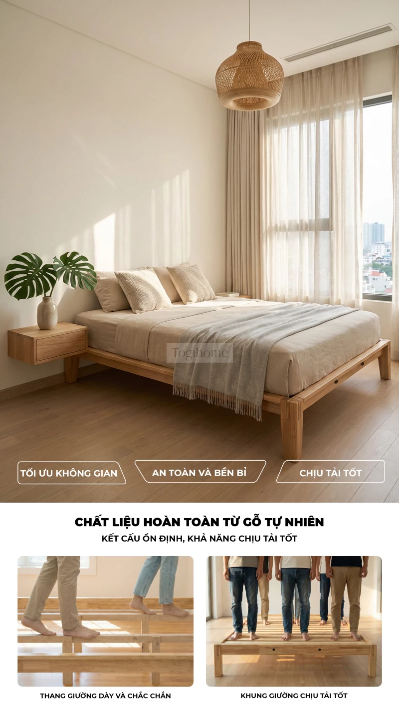 Giường Ngủ Gỗ Tự Nhiên Togismart Không Tựa Lưng Lắp Ghép Thông Minh Tiết Kiệm Diện Tích Cho Studio - Mã GN105