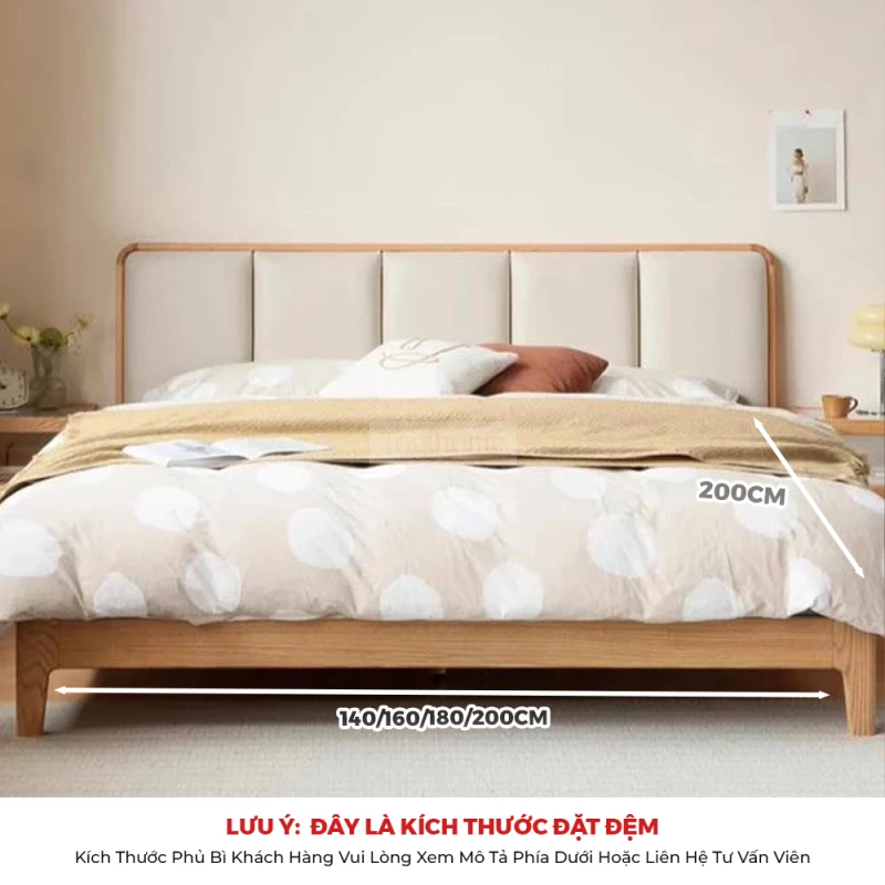 Giường Ngủ Japandi Rin Gỗ Cao Su Tự Nhiên, Đầu Giường Da Bọc Đệm Mút Cao Cấp - Mã GM118
