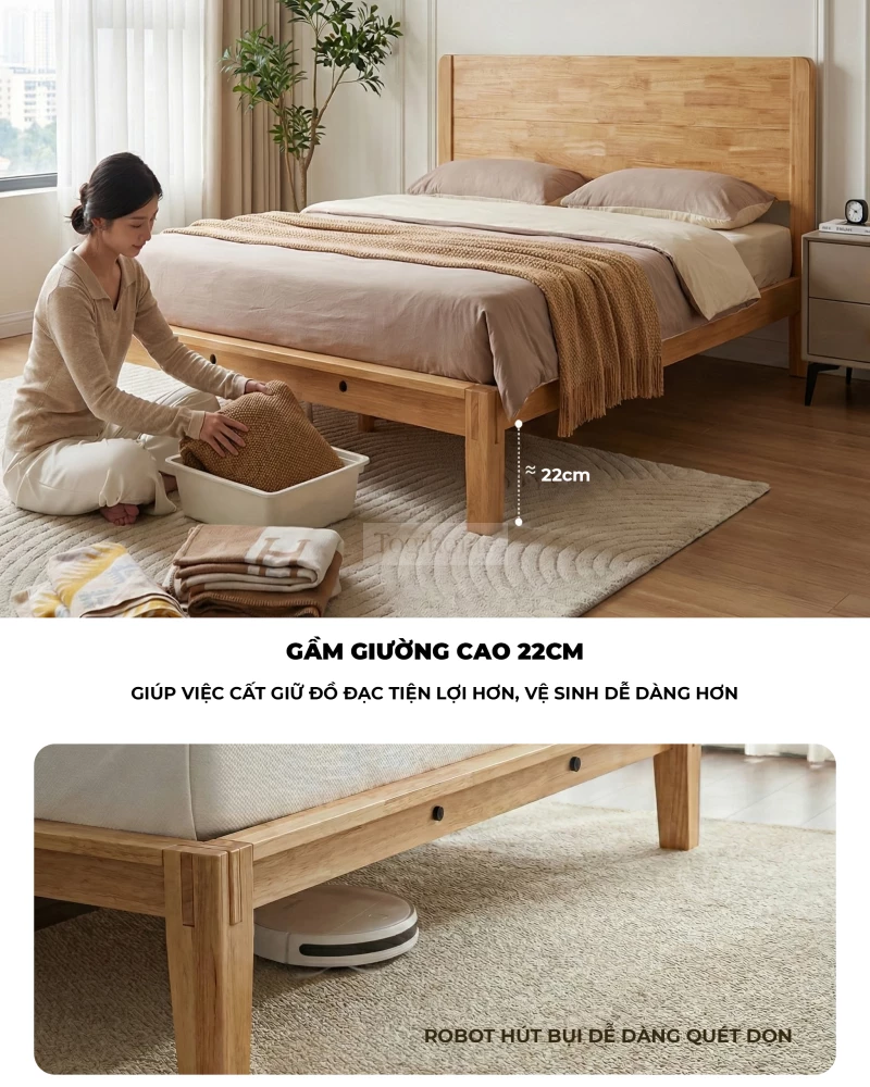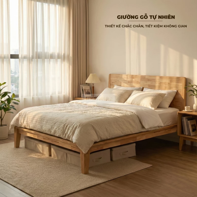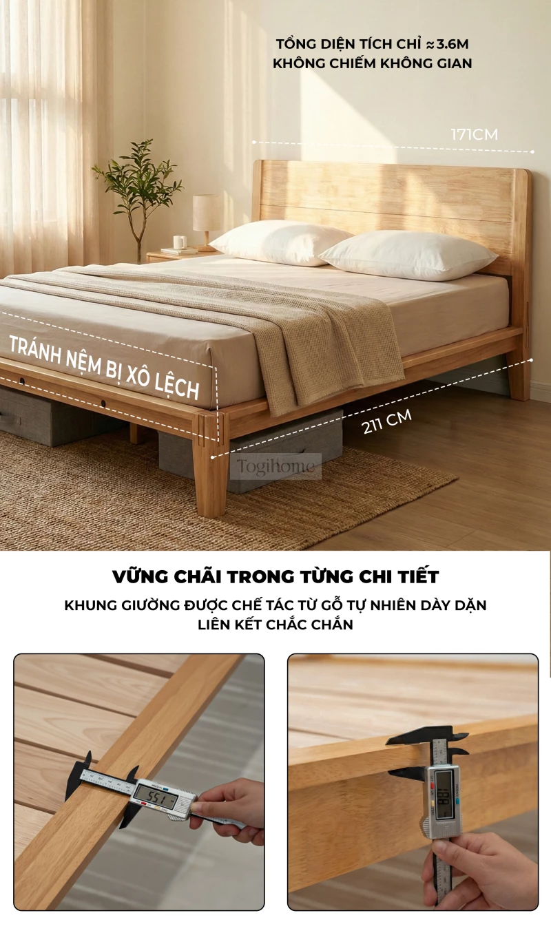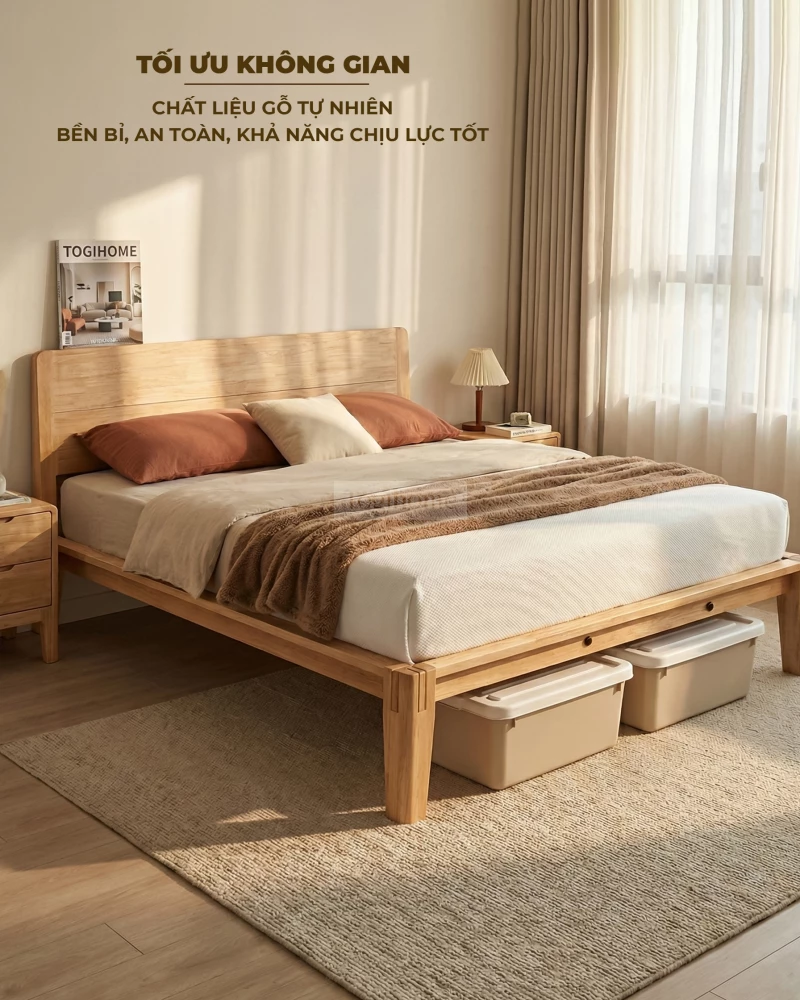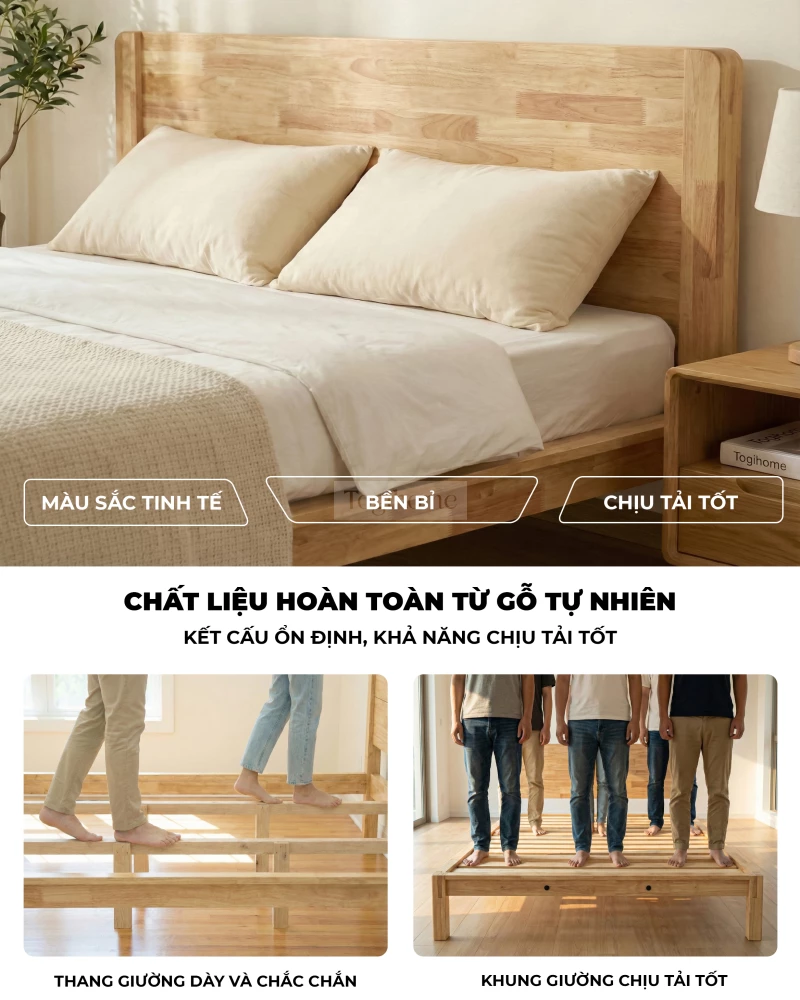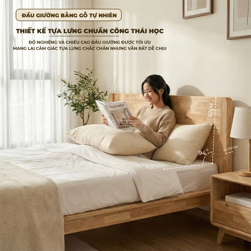 Giường Ngủ Togismart Khung Gỗ Chắc Chắn Màu Natural Tựa Đầu Thiết Kế Nghiêng Nhẹ Thoải Mái Tựa Lưng - Mã GM121