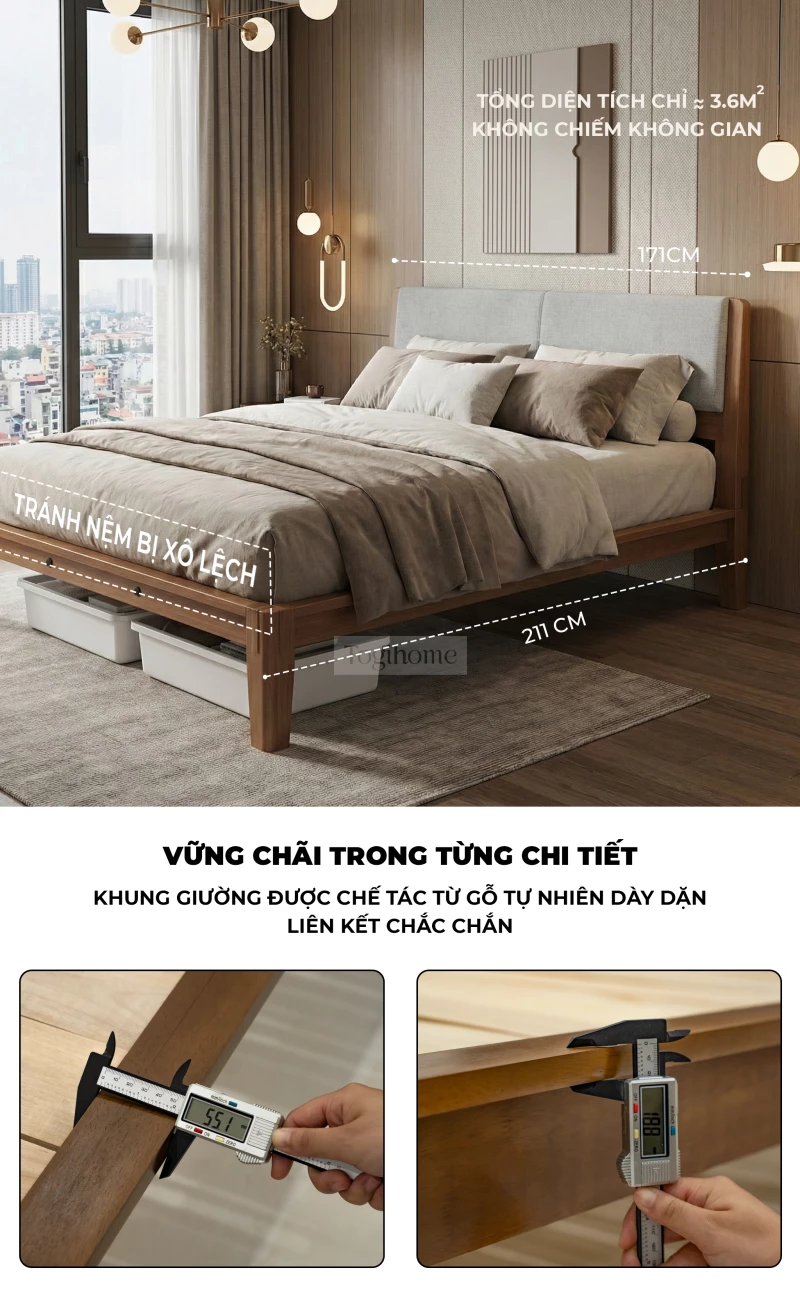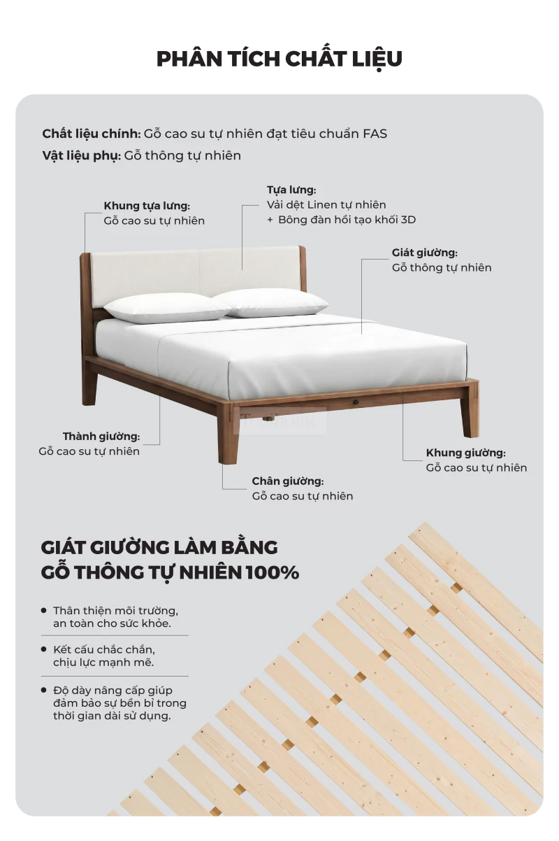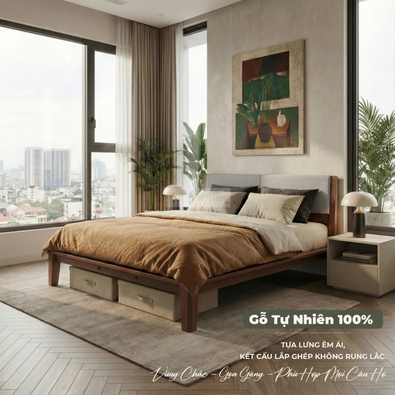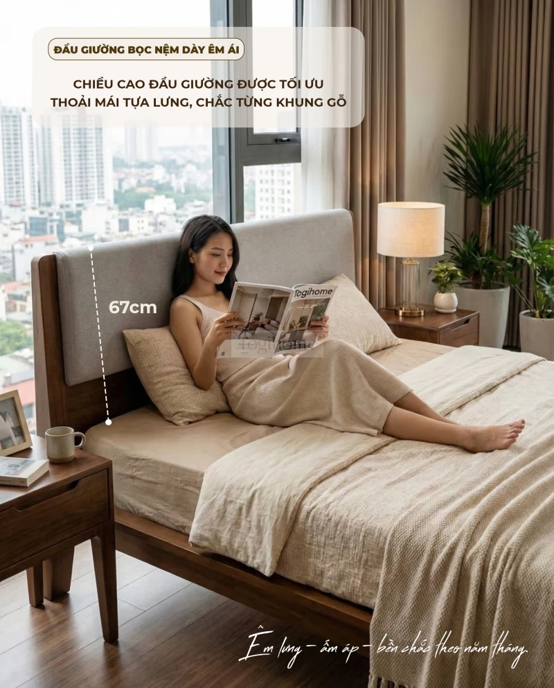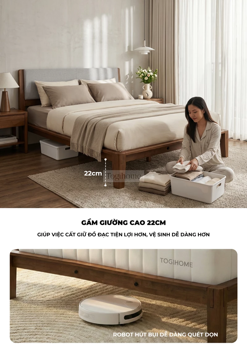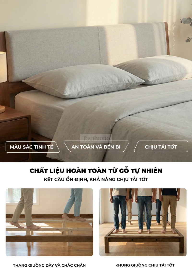Giường Ngủ Togismart Lắp Ghép Không Ốc Vít Màu Nâu Trầm Đầu Nệm Tháo Rời Dễ Vệ Sinh Tiện Lợi - Mã GM129