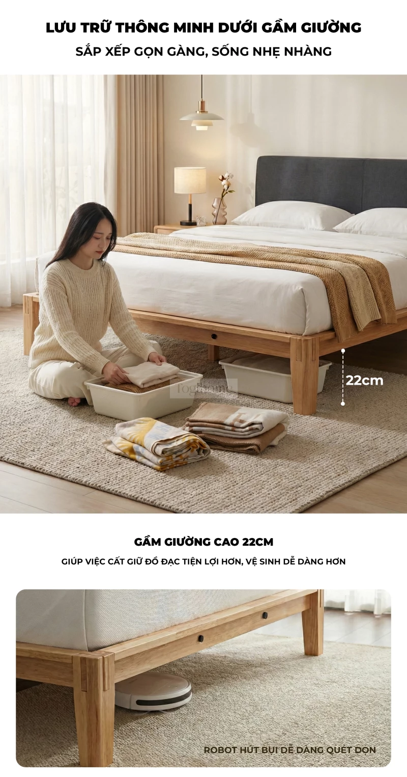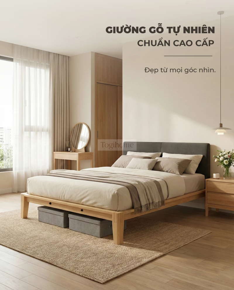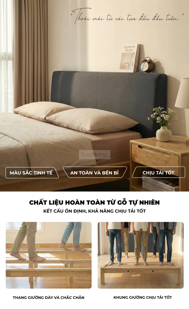 Giường Ngủ Togismart Lắp Ráp Thông Minh Màu Gỗ Mộc Phối Đầu Nệm Màu Ghi Sạch Sẽ Điểm Nhấn Căn Hộ - Mã GM118
