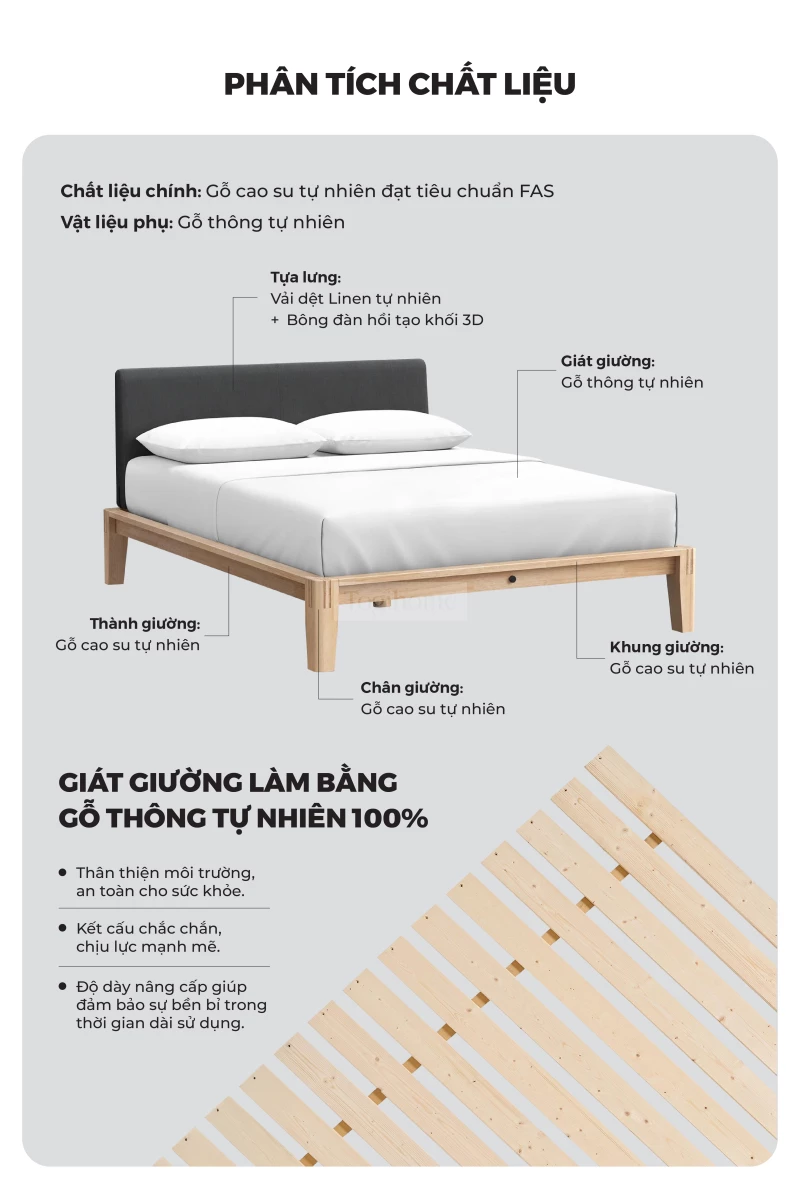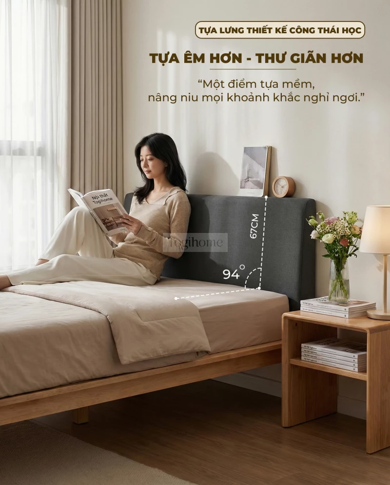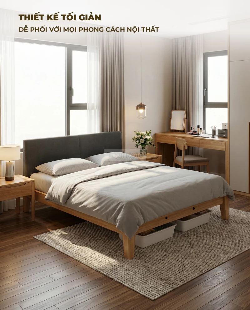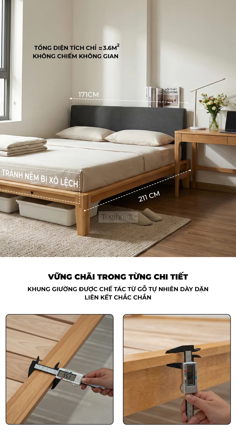 Giường Ngủ Togismart Lắp Ráp Thông Minh Màu Gỗ Mộc Phối Đầu Nệm Màu Ghi Sạch Sẽ Điểm Nhấn Căn Hộ - Mã GM118