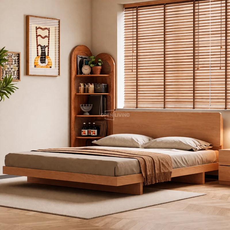 Giường Ngủ Tông Gỗ Sáng Thiết Kế Gọn Gàng Hiện Đại Openliving GN654