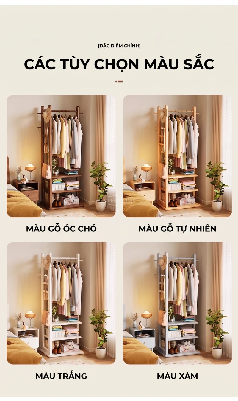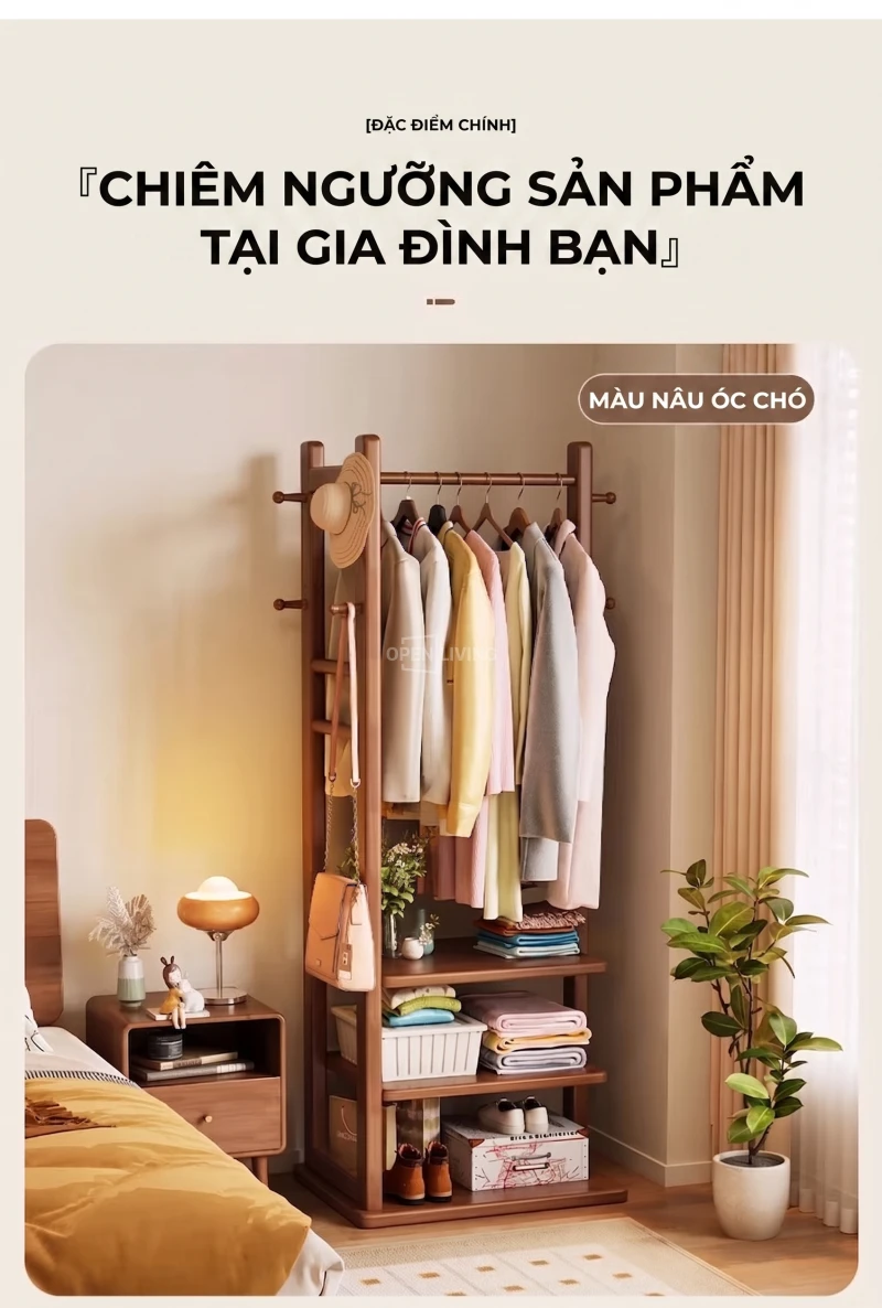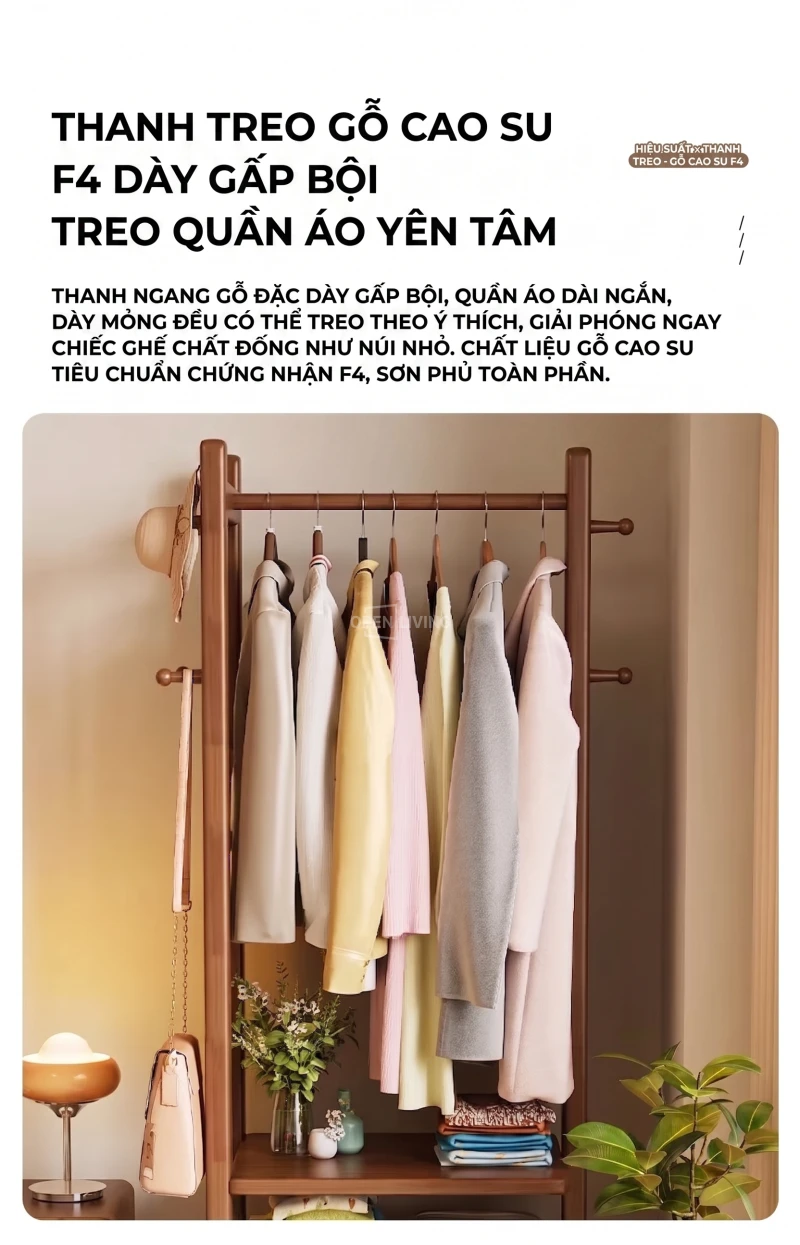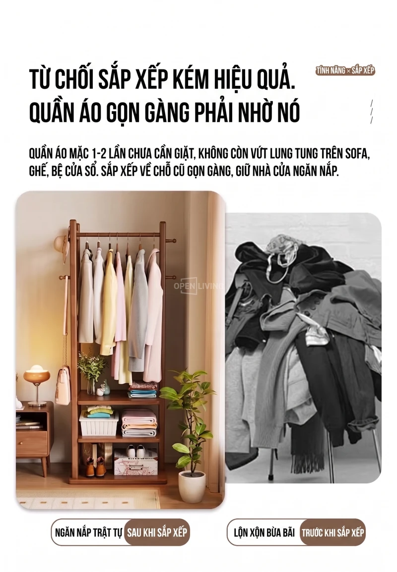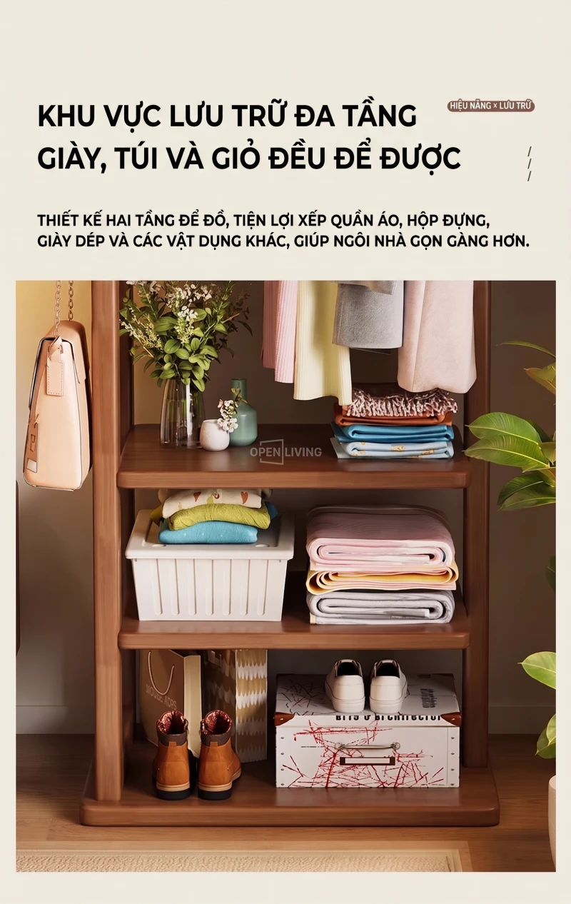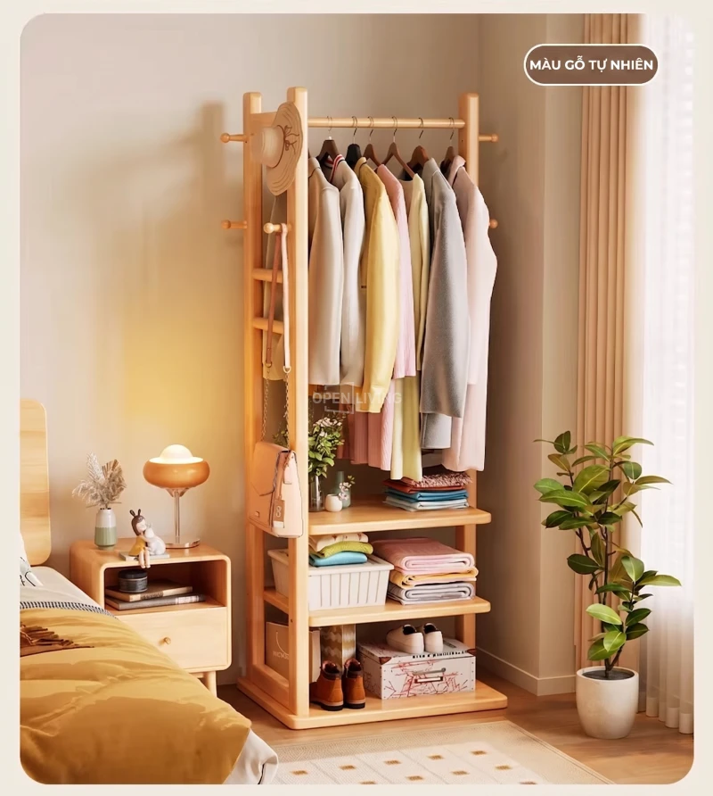 Kệ Gỗ Tự Nhiên Openliving Khung Treo Quần Áo Kèm Kệ Dưới Phong Cách Tối Giản KG742