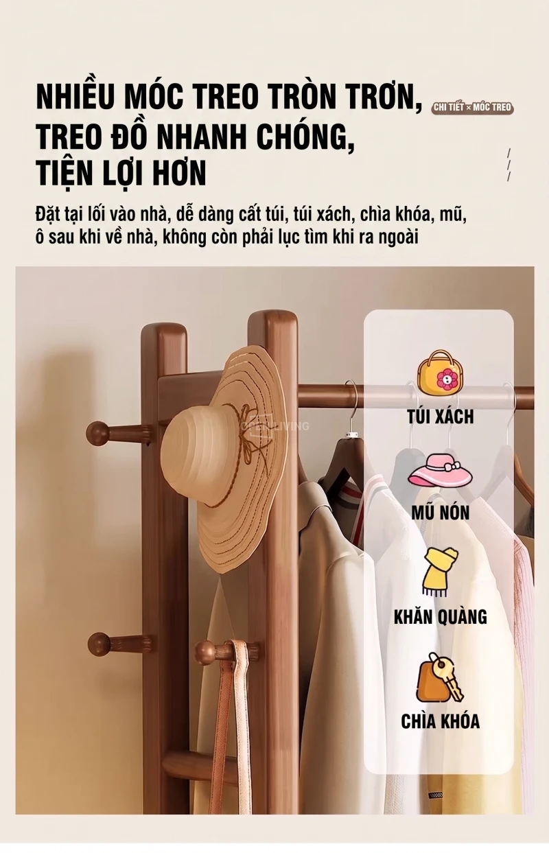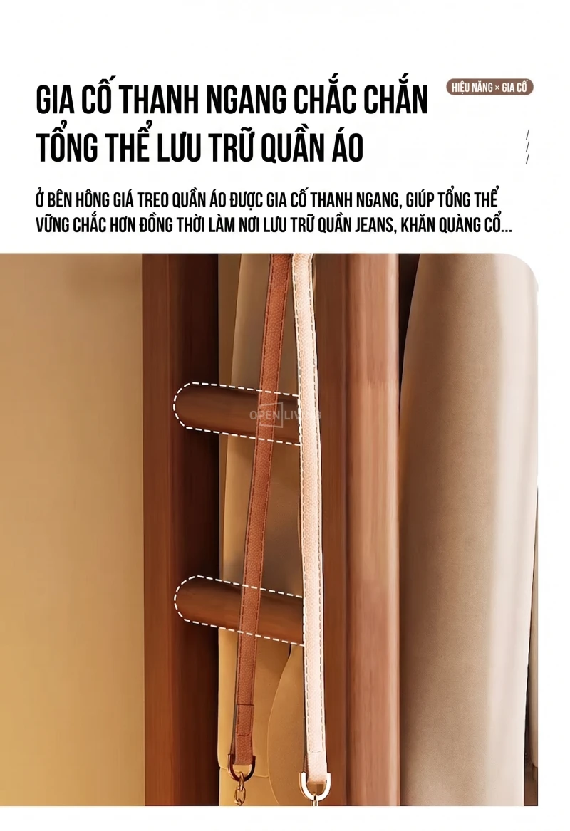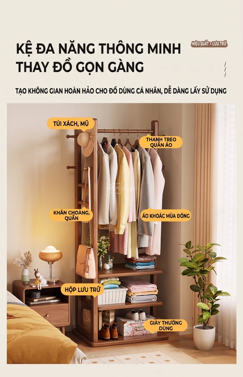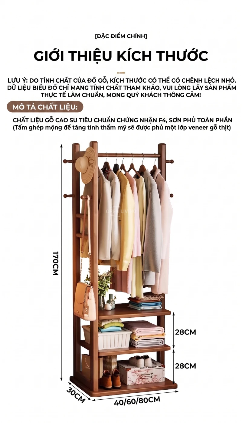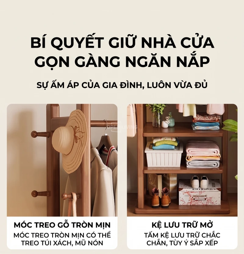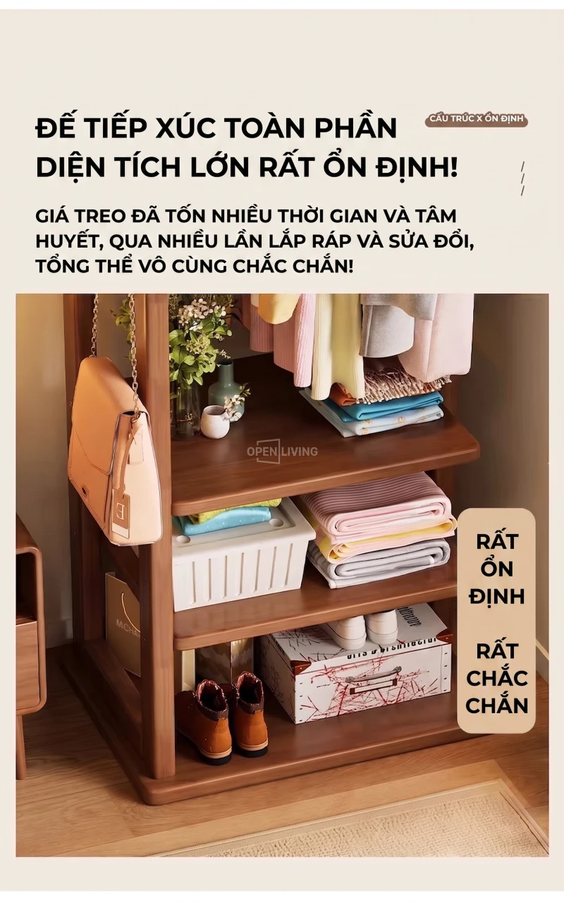 Kệ Gỗ Tự Nhiên Openliving Khung Treo Quần Áo Kèm Kệ Dưới Phong Cách Tối Giản KG742
