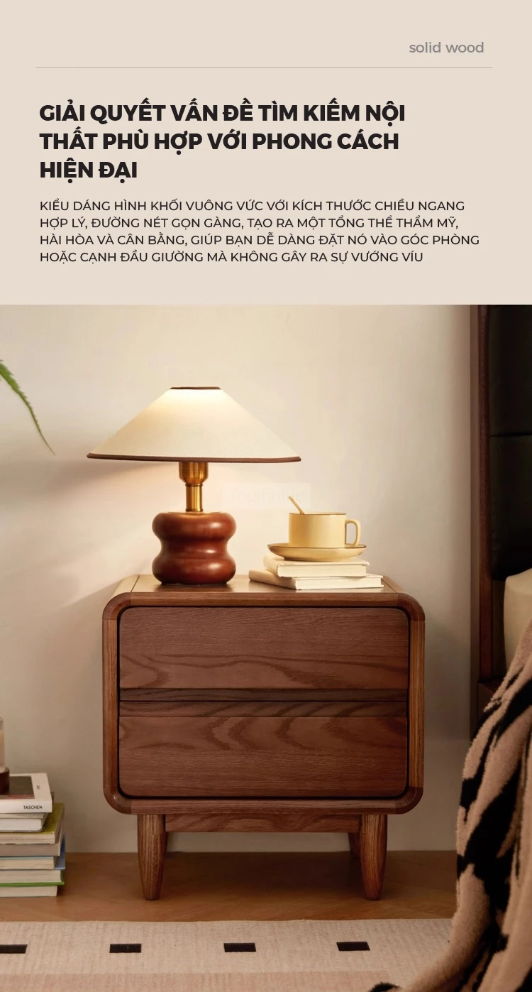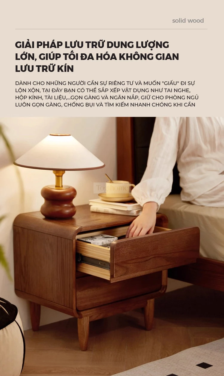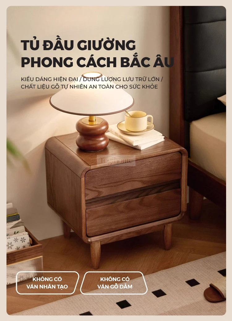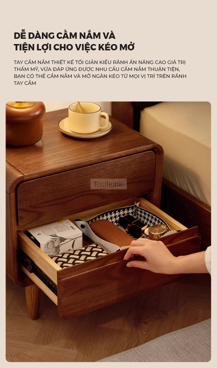 Tủ Đầu Giường Gỗ Tự Nhiên Togihome 2 Ngăn Kéo Thiết Kế Bo Cong - Mã TDG232
