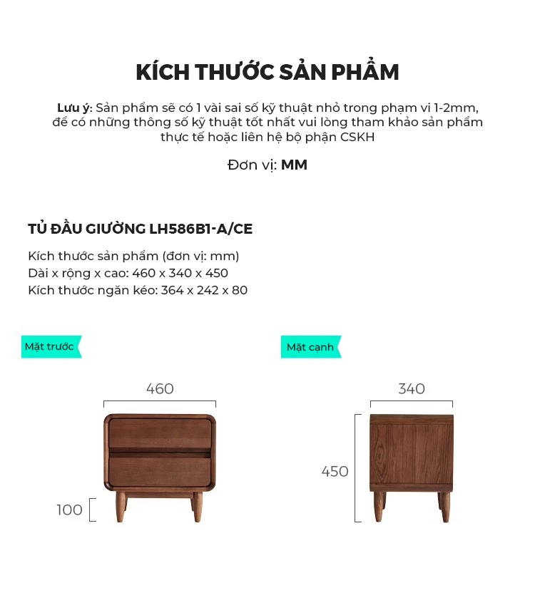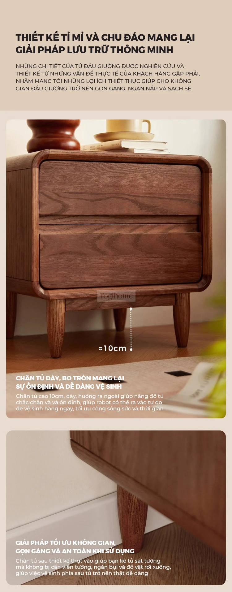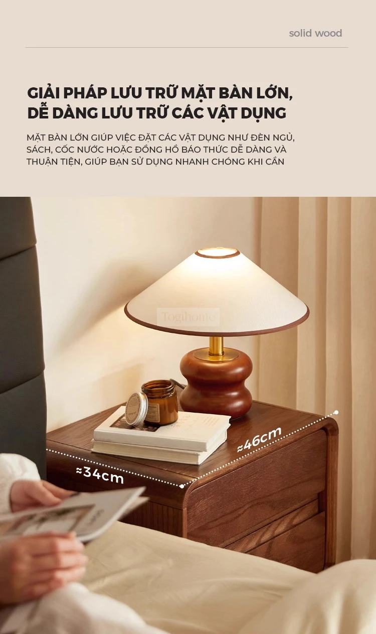 Tủ Đầu Giường Gỗ Tự Nhiên Togihome 2 Ngăn Kéo Thiết Kế Bo Cong - Mã TDG232