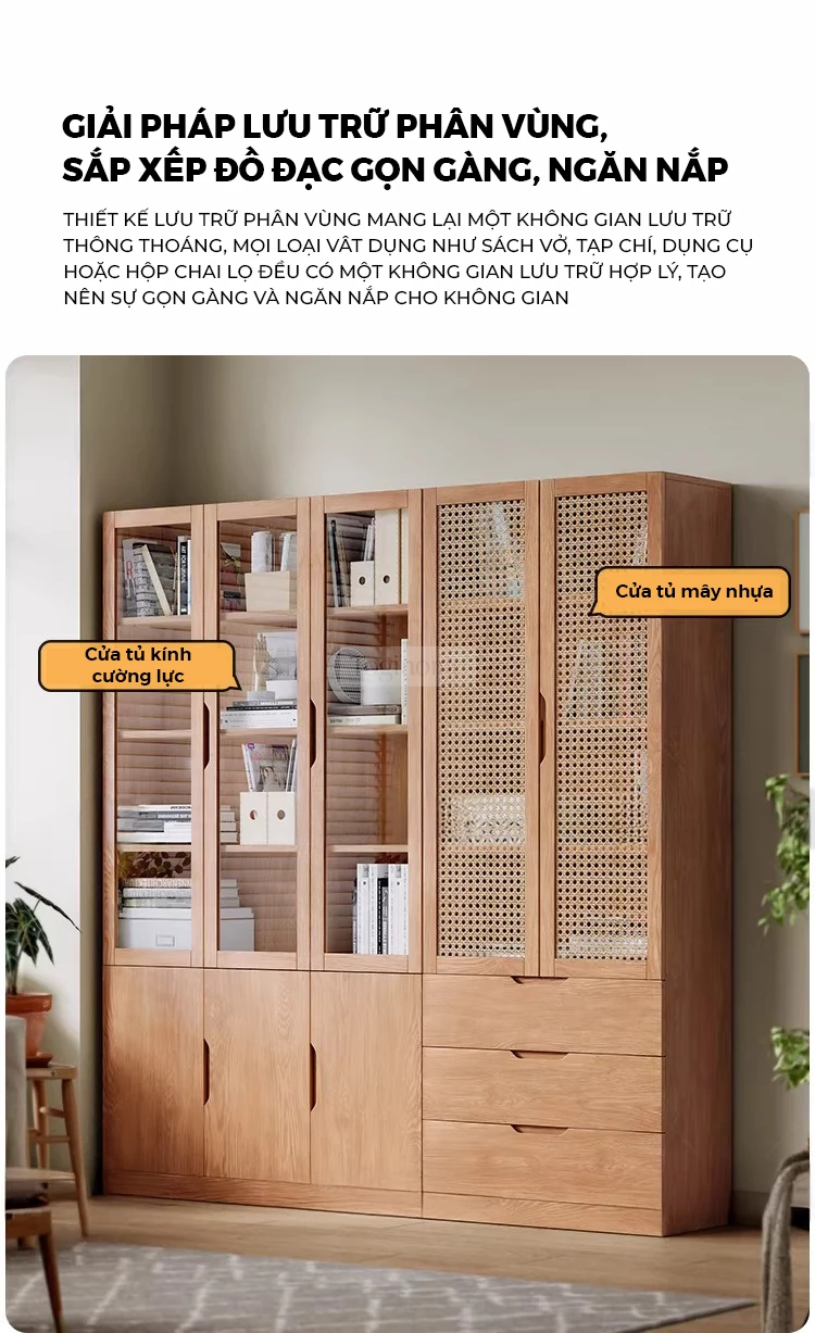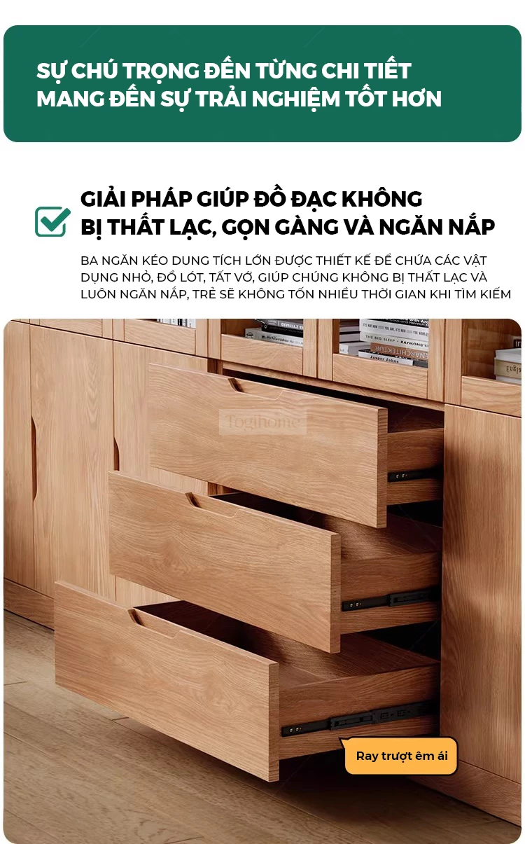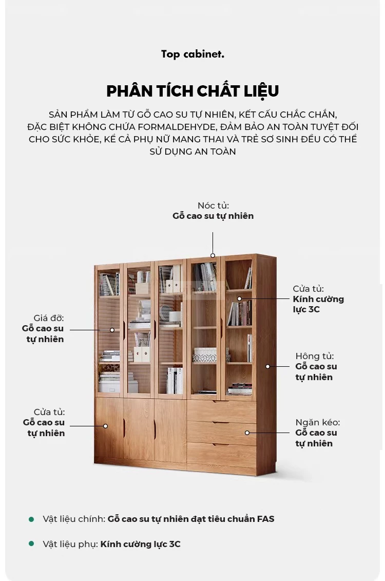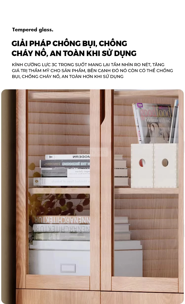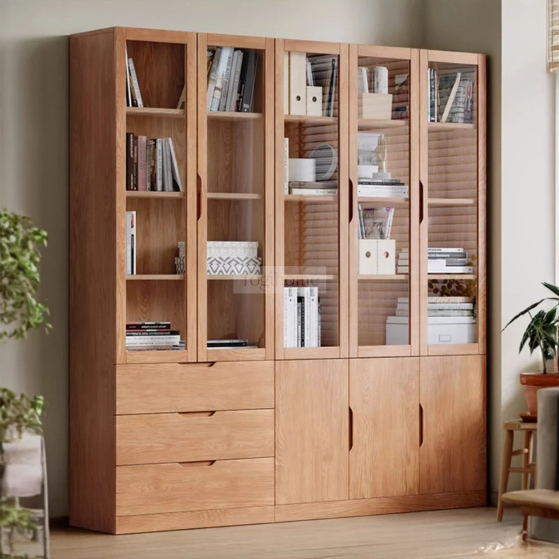 Tủ Sách Kính Kết Hợp Ngăn Kéo Gỗ Tự Nhiên Togihome TS480 – Lưu Trữ Hồ Sơ, Sách, Tài Liệu Gọn Gàng